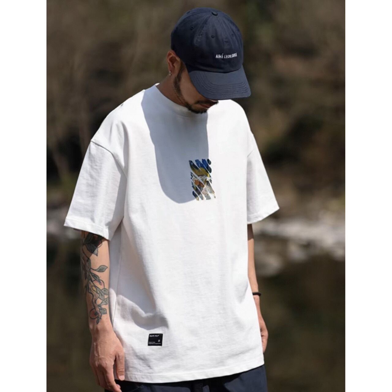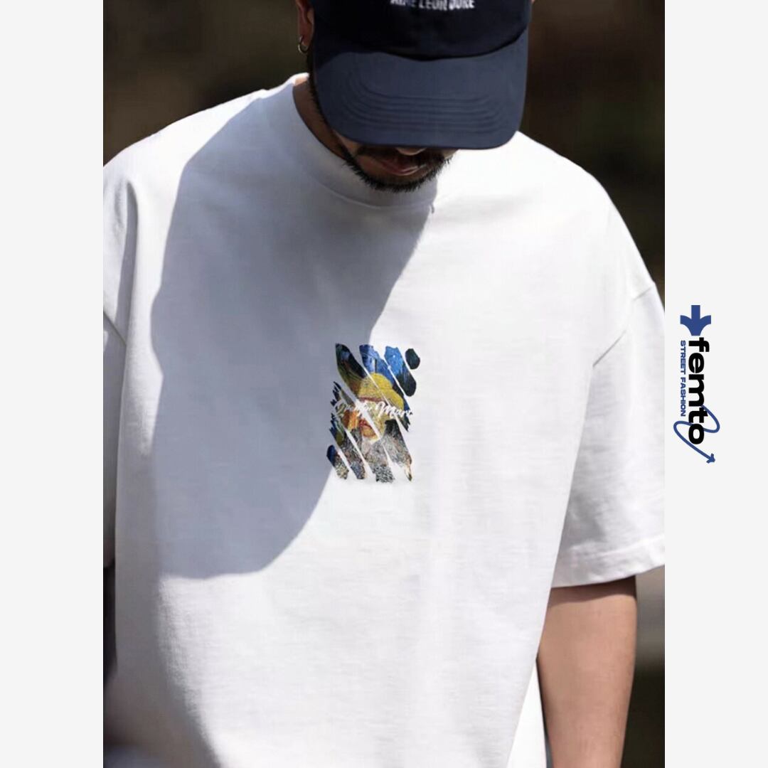 フロントにさりげなく配置されたアートグラフィックが、洗練された雰囲気を演出するTシャツ。