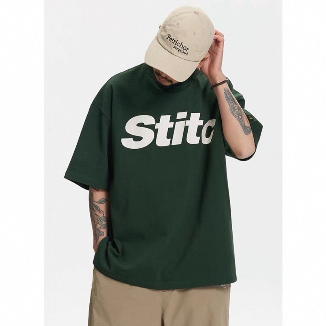 大胆なロゴプリントが目を引く、ストリート感あふれるオーバーサイズTシャツ。