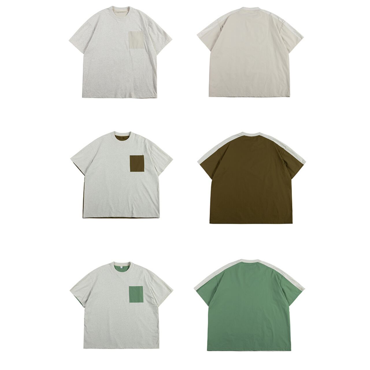 さりげないデザインが光る、カラーブロックポケットTシャツ。