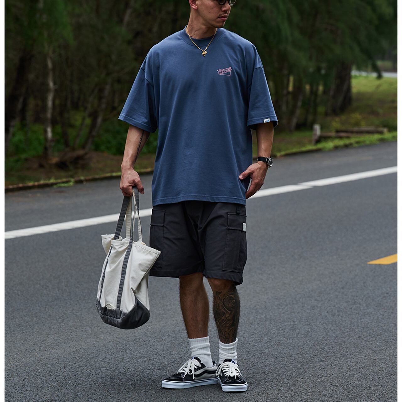 キャップやワイドパンツと合わせれば、より一層ストリート感を強調できます。