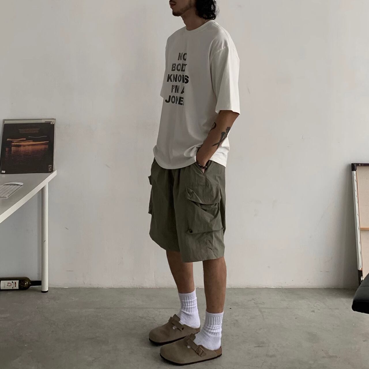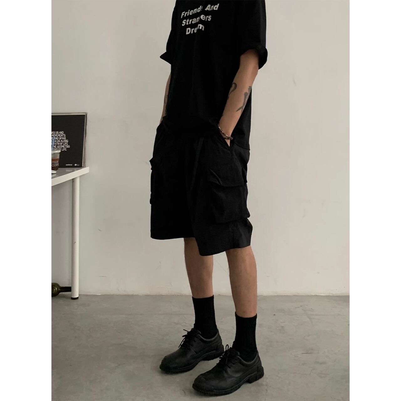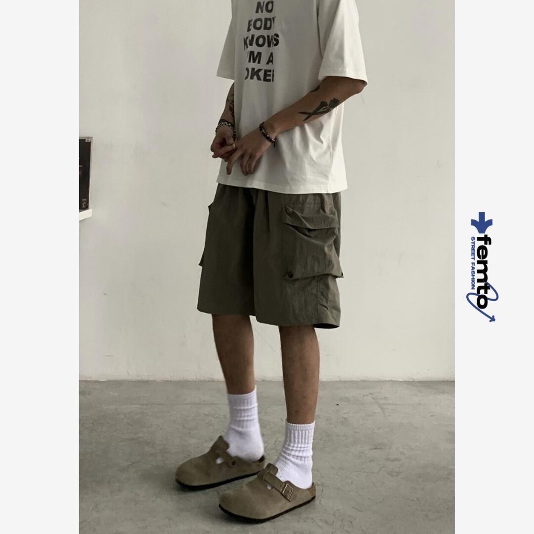 ルーズフィットなバルーンシルエットカーゴショートパンツ。