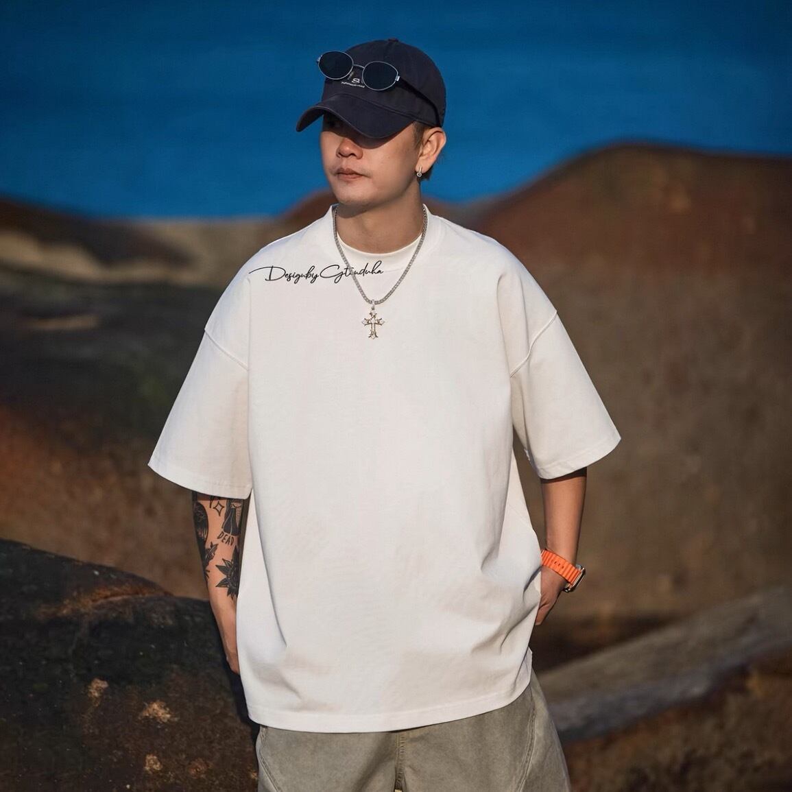 こなれ感を演出するルーズなサイズ感と、ミニマルなデザインが特徴のTシャツ。