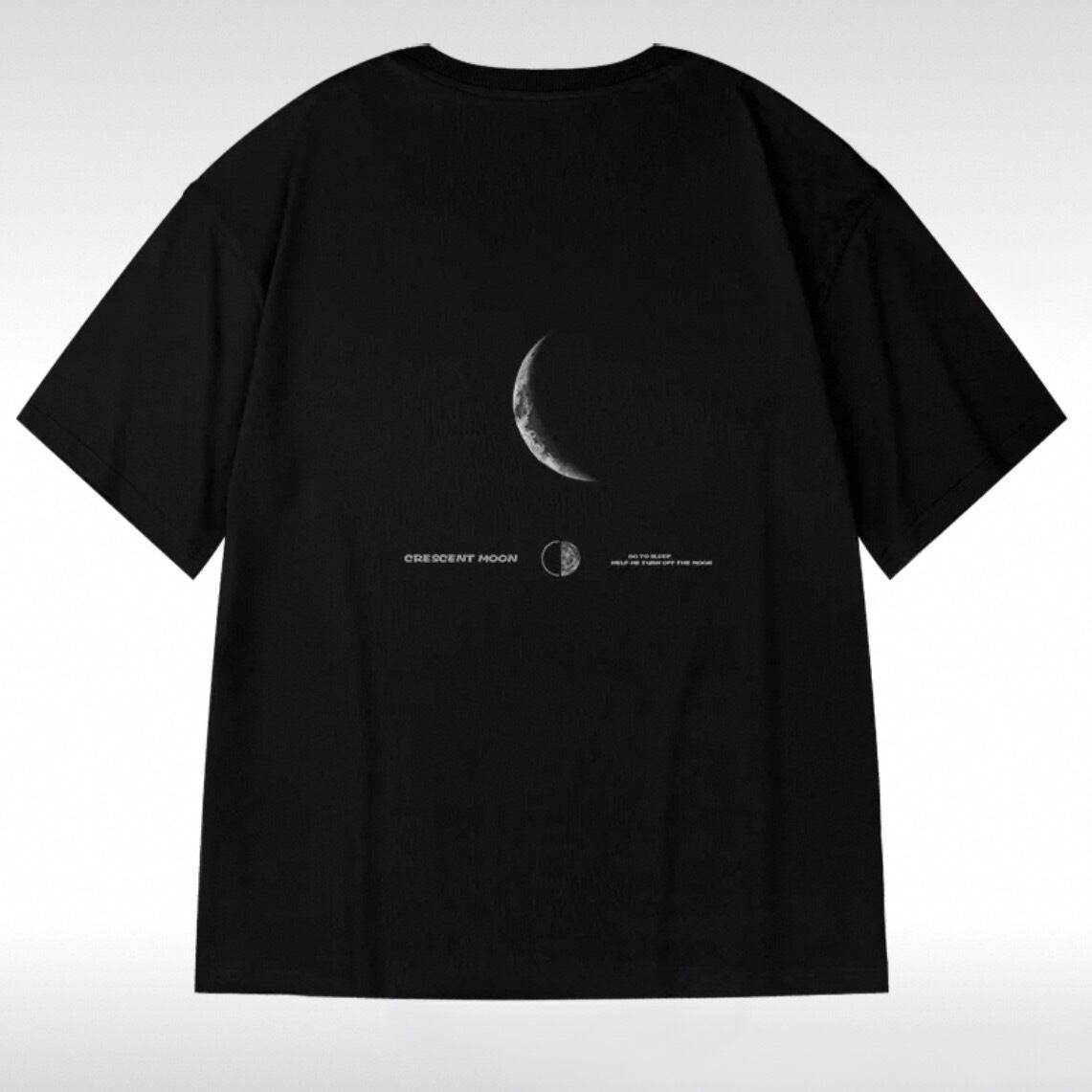 月の神秘的な魅力を落とし込んだ、アーティスティックなバックプリントが目を惹くTシャツ。
