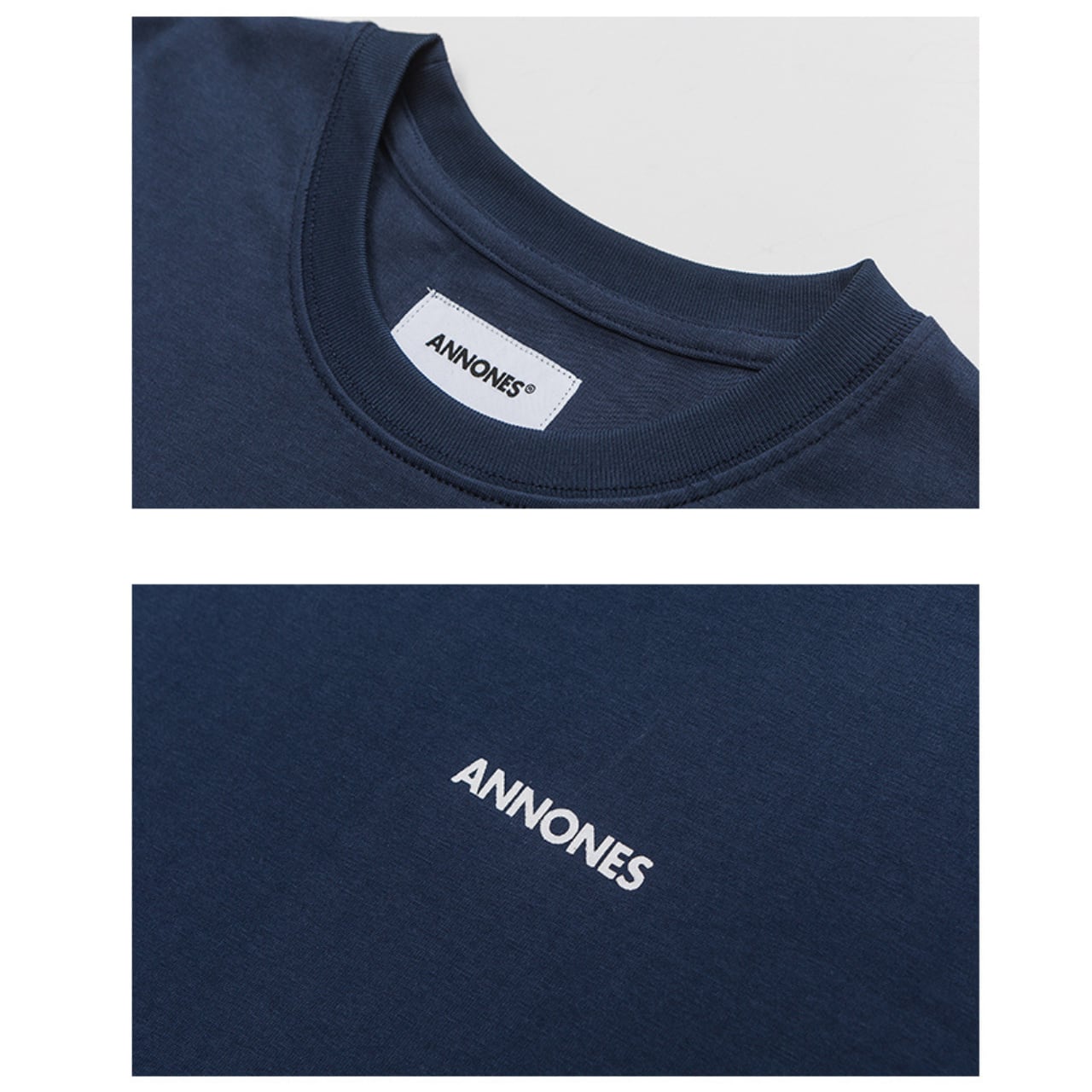 フロントに施された小さなロゴが、シンプルながらも存在感を放つ一枚。