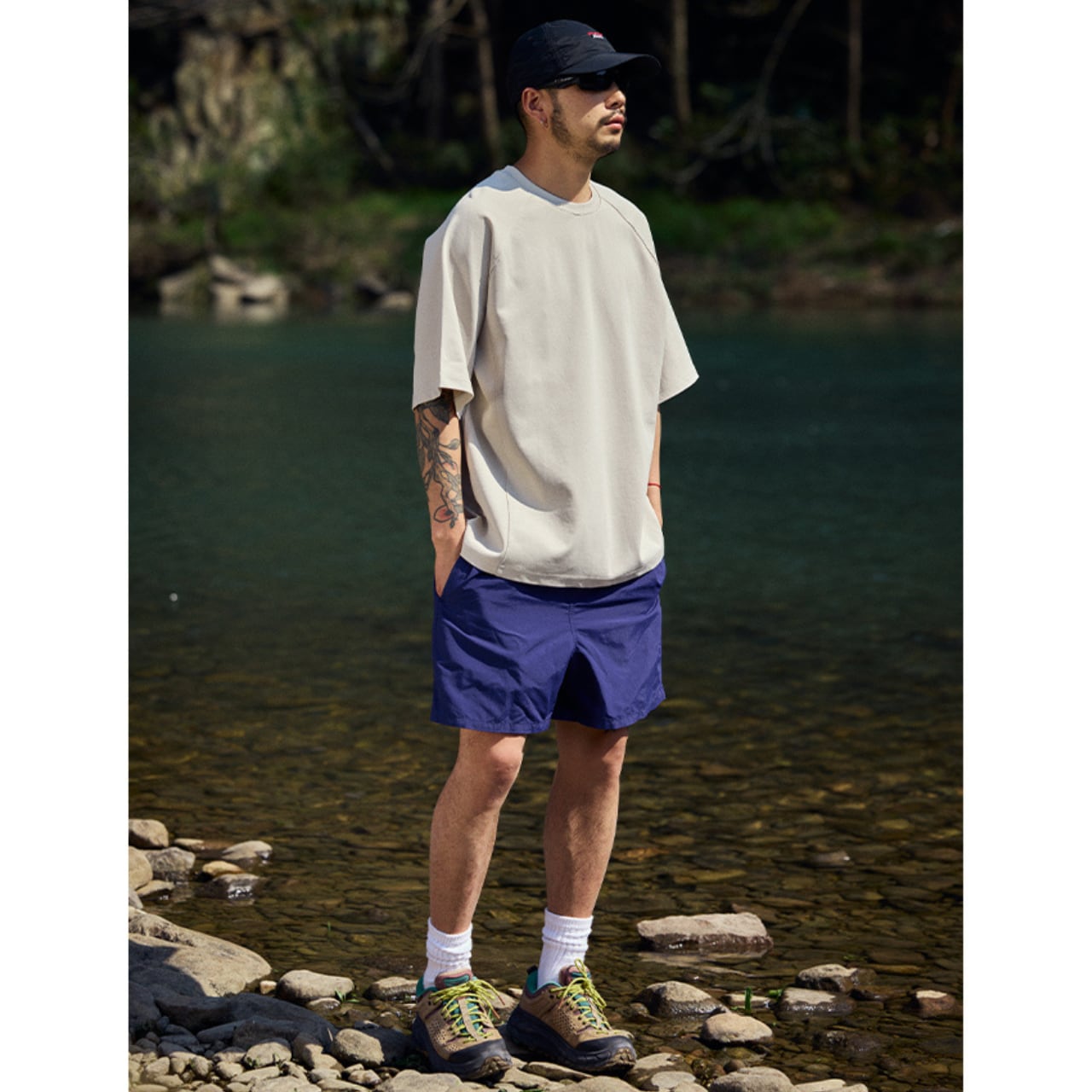 アウトドアでもタウンユースでも活躍する、ラグランスリーブのシンプルTシャツ。