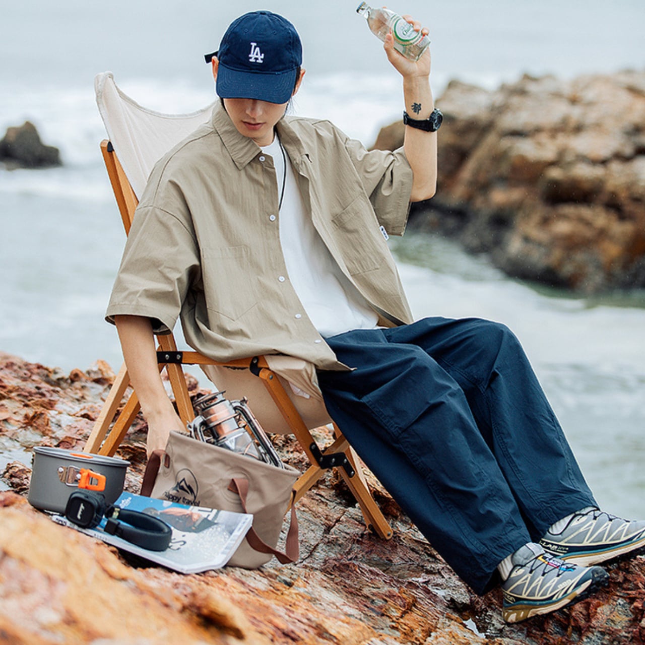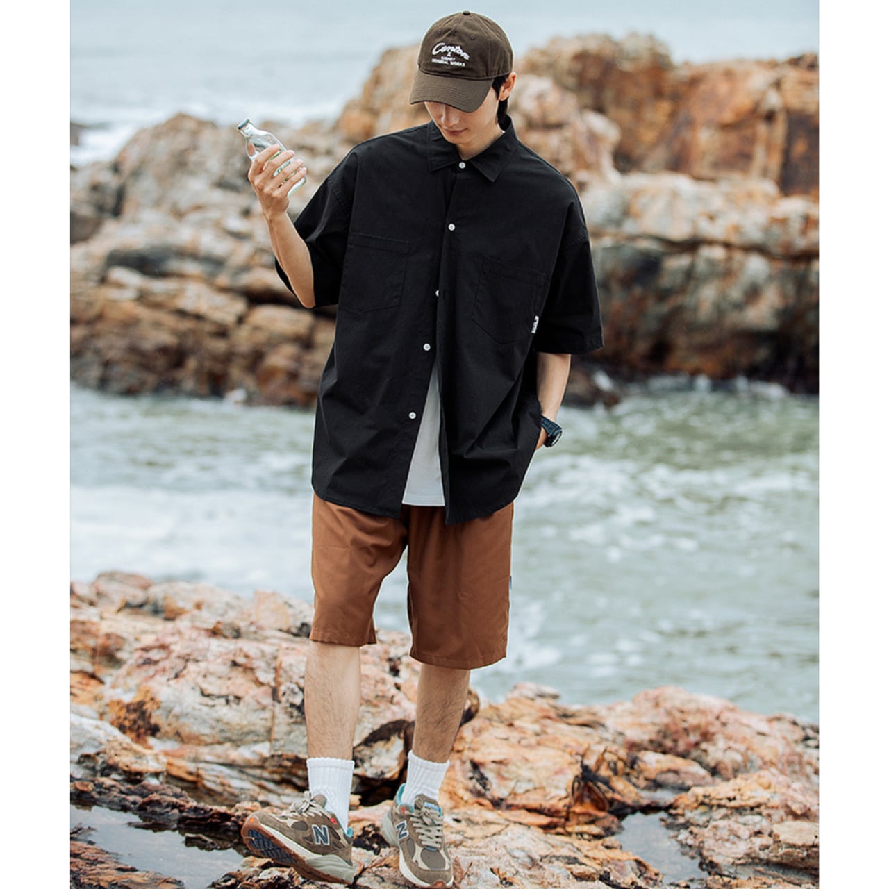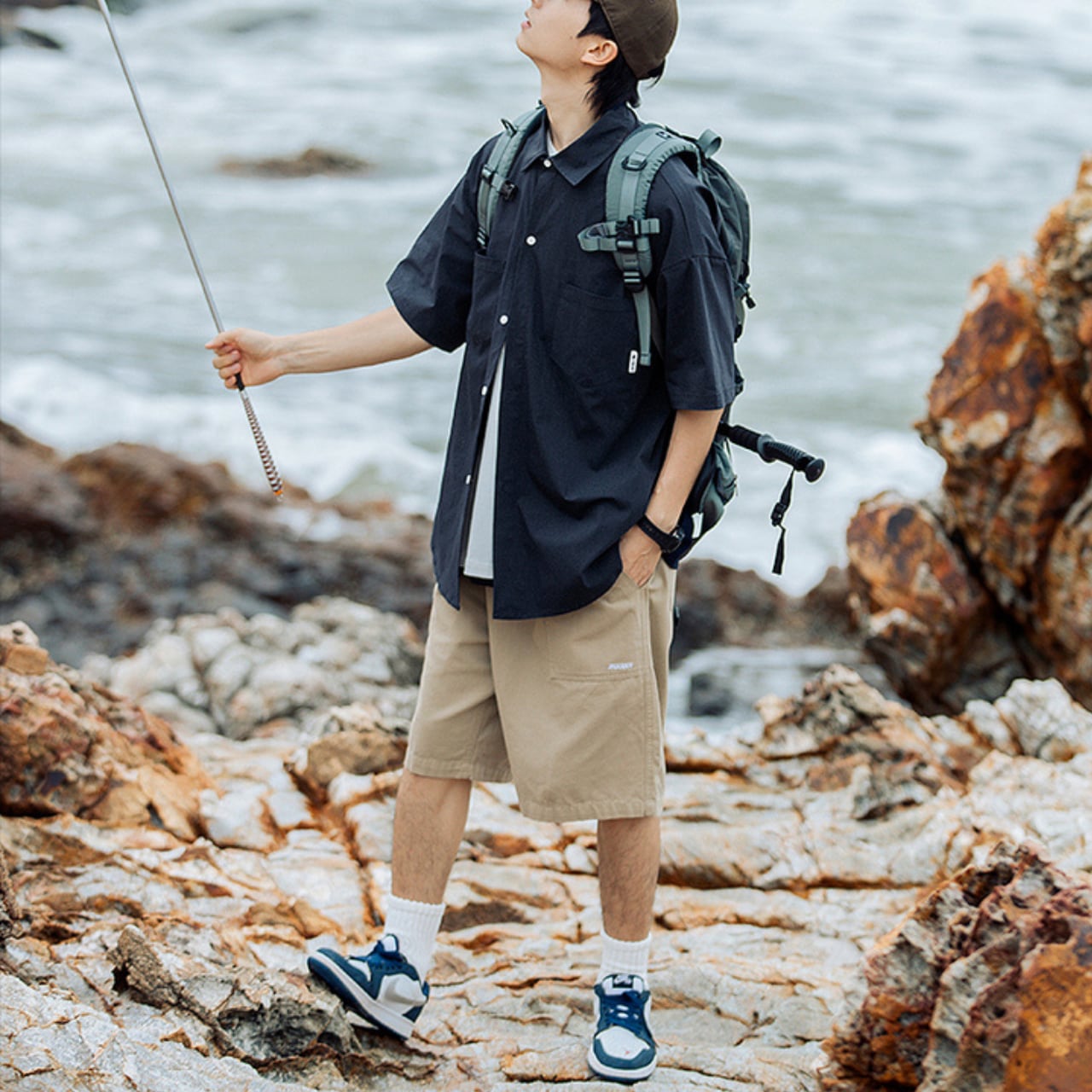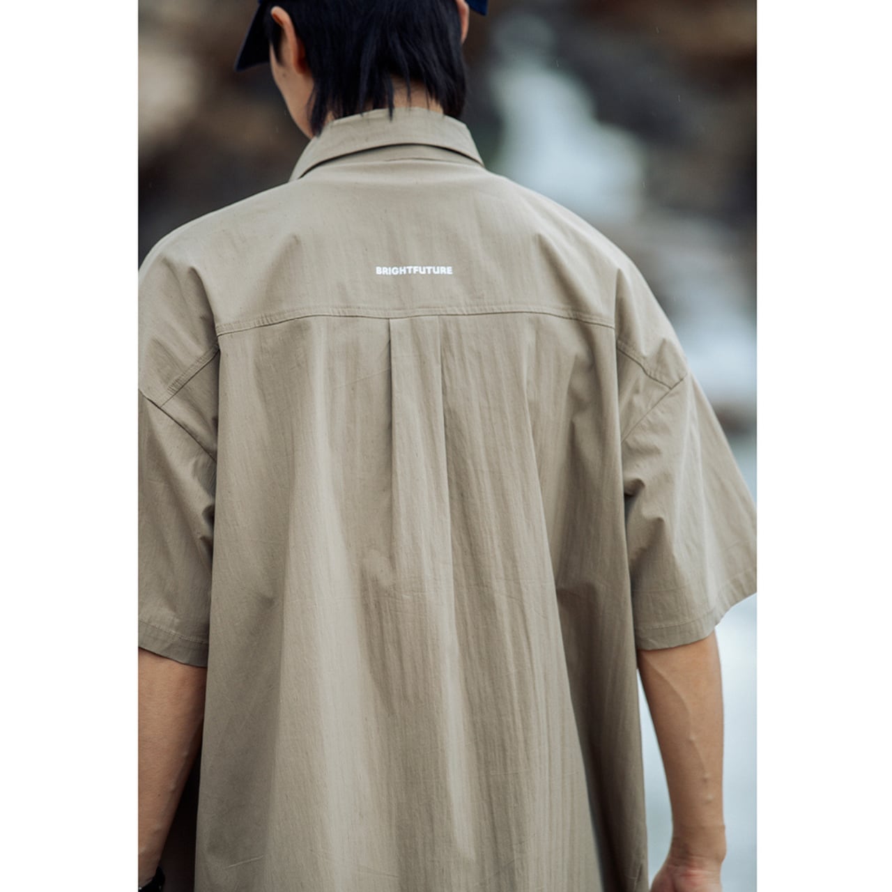 背面の切り替えディテールと控えめなロゴが、無骨ながらも洗練された印象を与える一着です。