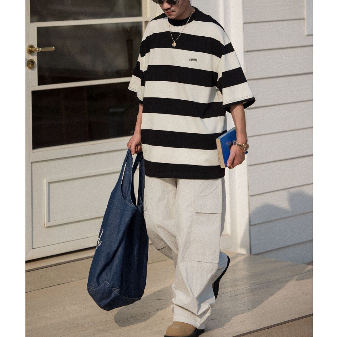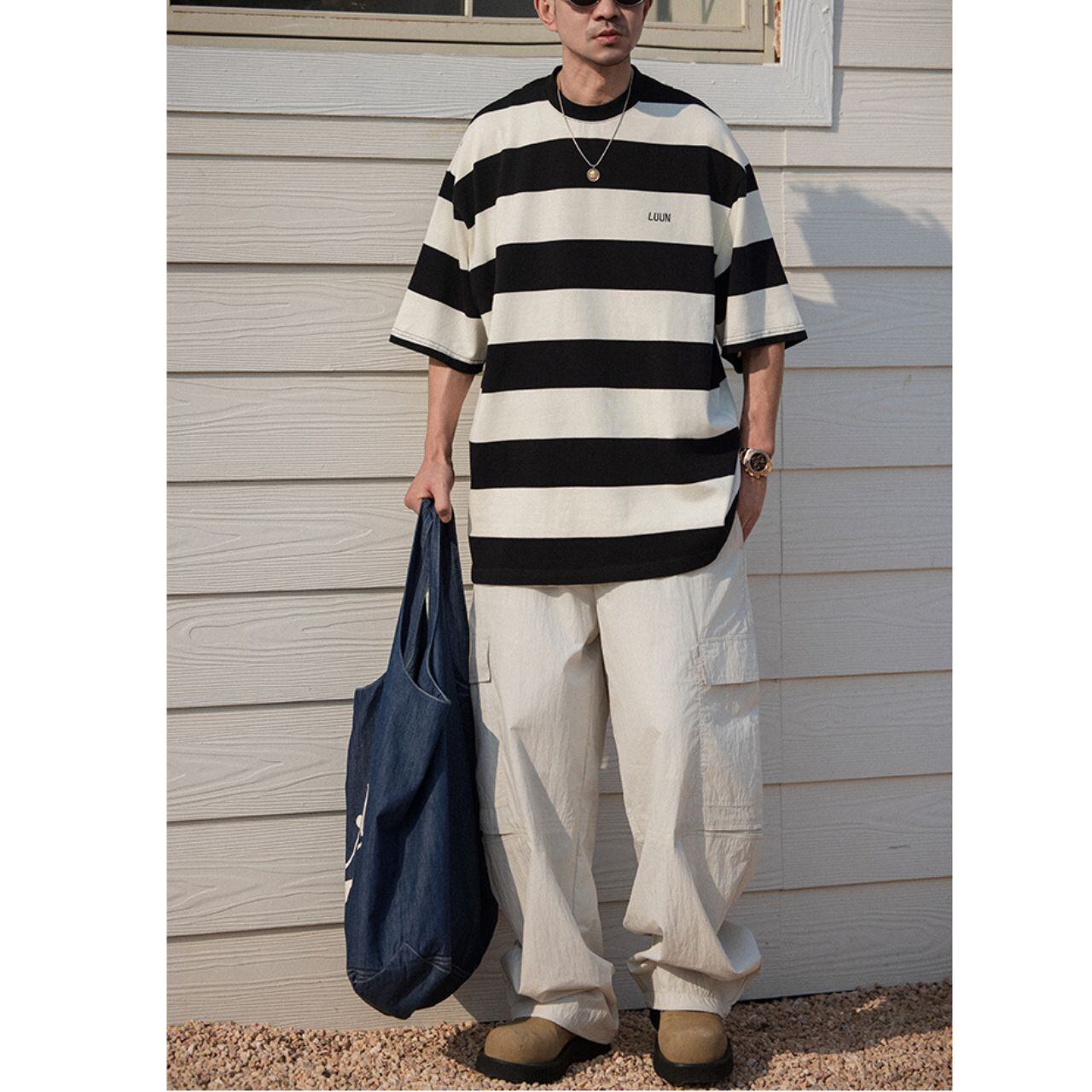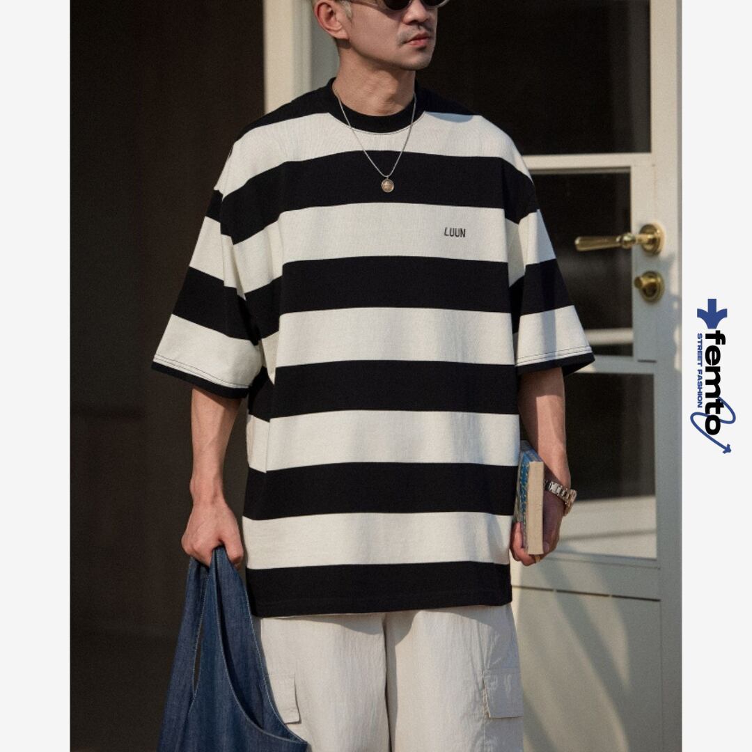 ワイドピッチのボーダーが目を惹くオーバーサイズTシャツ。