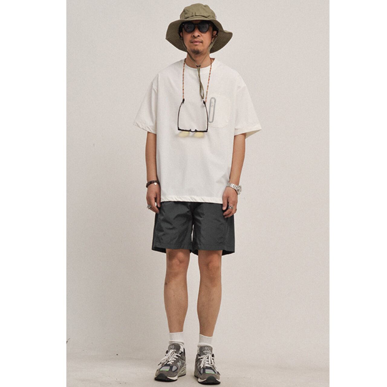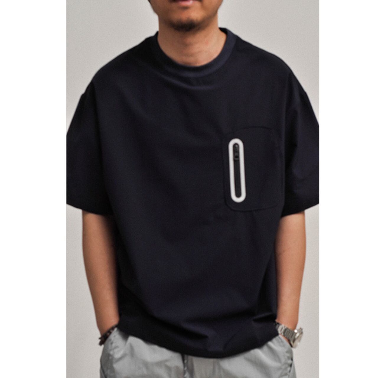 胸元にジップ付きポケットをあしらった、アウトドアライクなデザインが目を引くTシャツ。