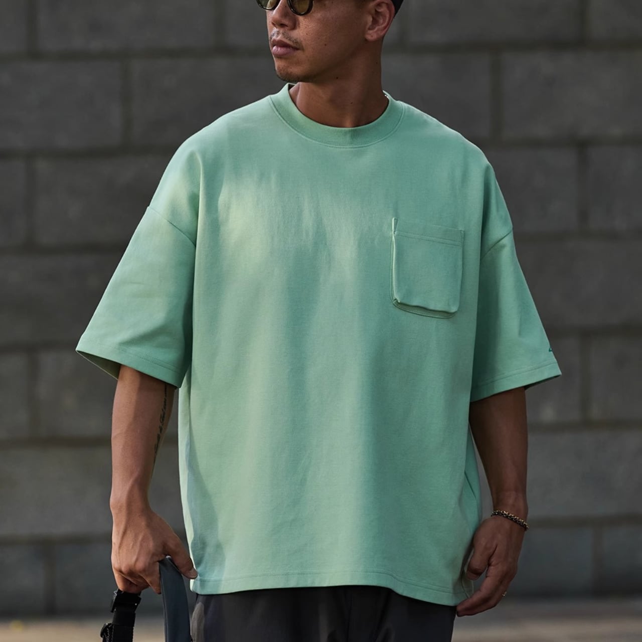 存在感のある胸ポケットがワンポイントになったオーバーサイズTシャツ。