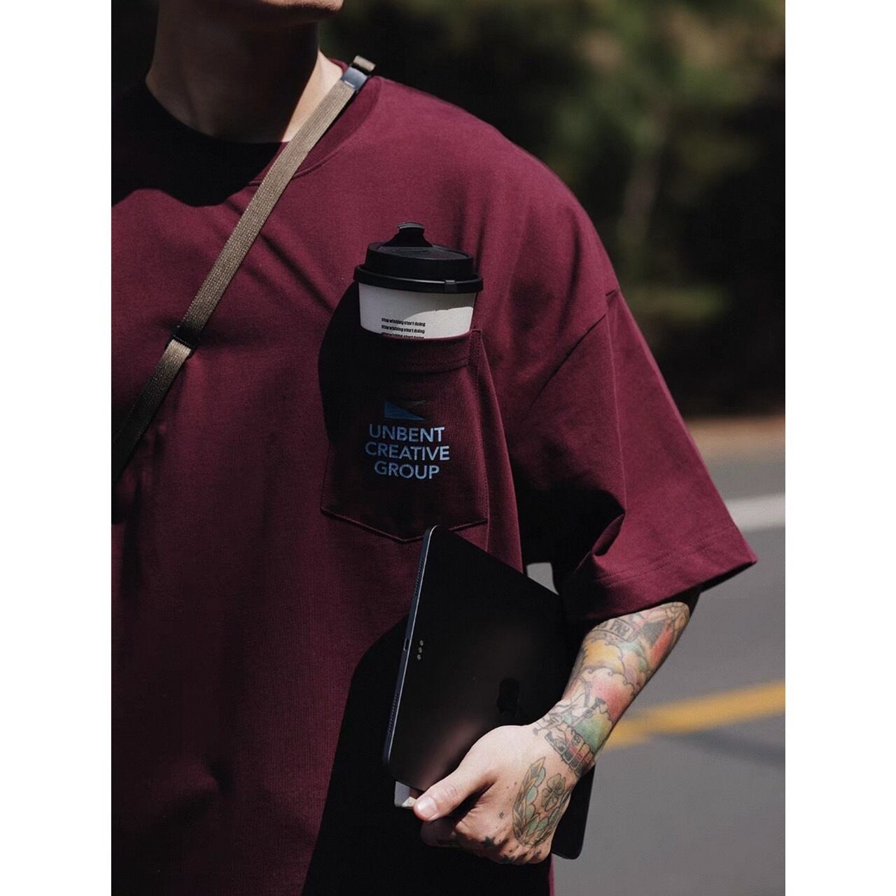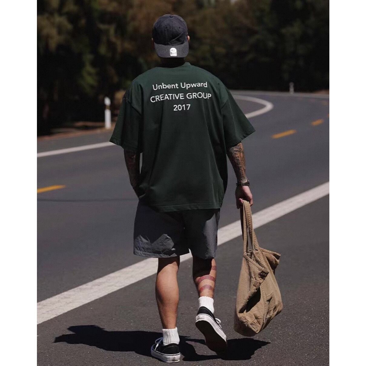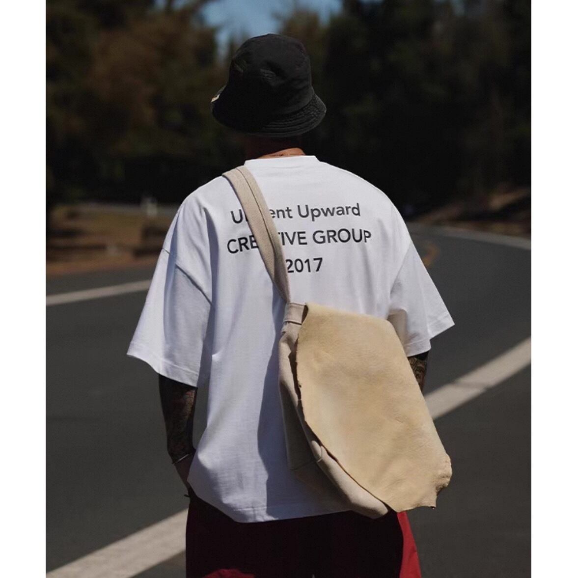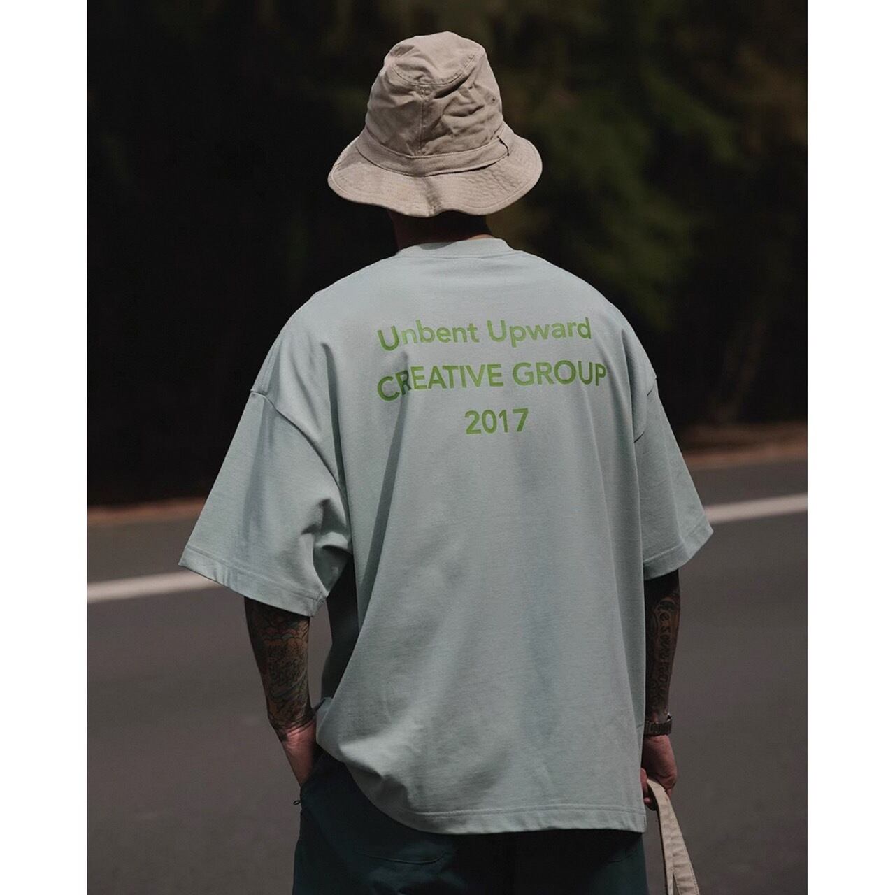 メッセージ性を感じさせるバックロゴが目を引くTシャツ。