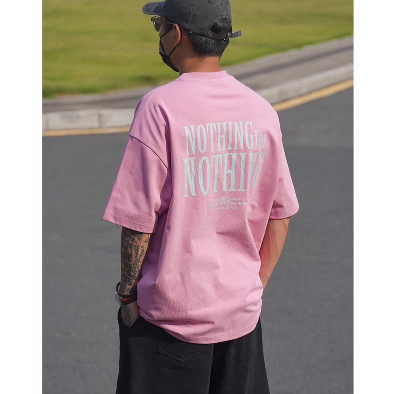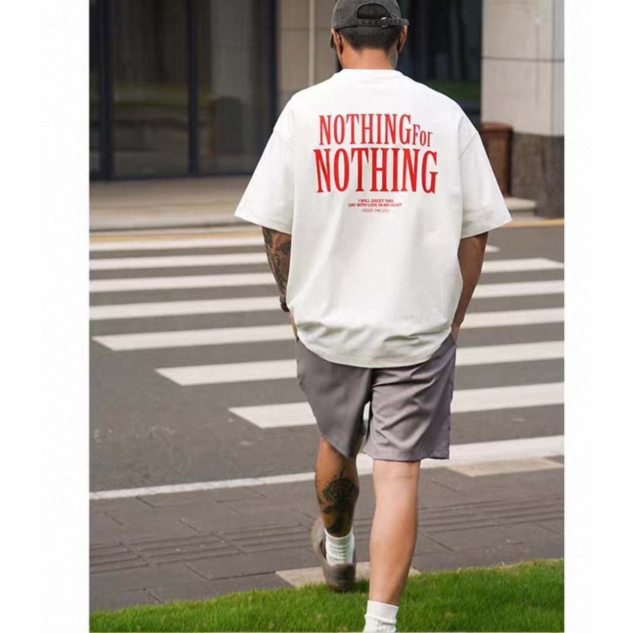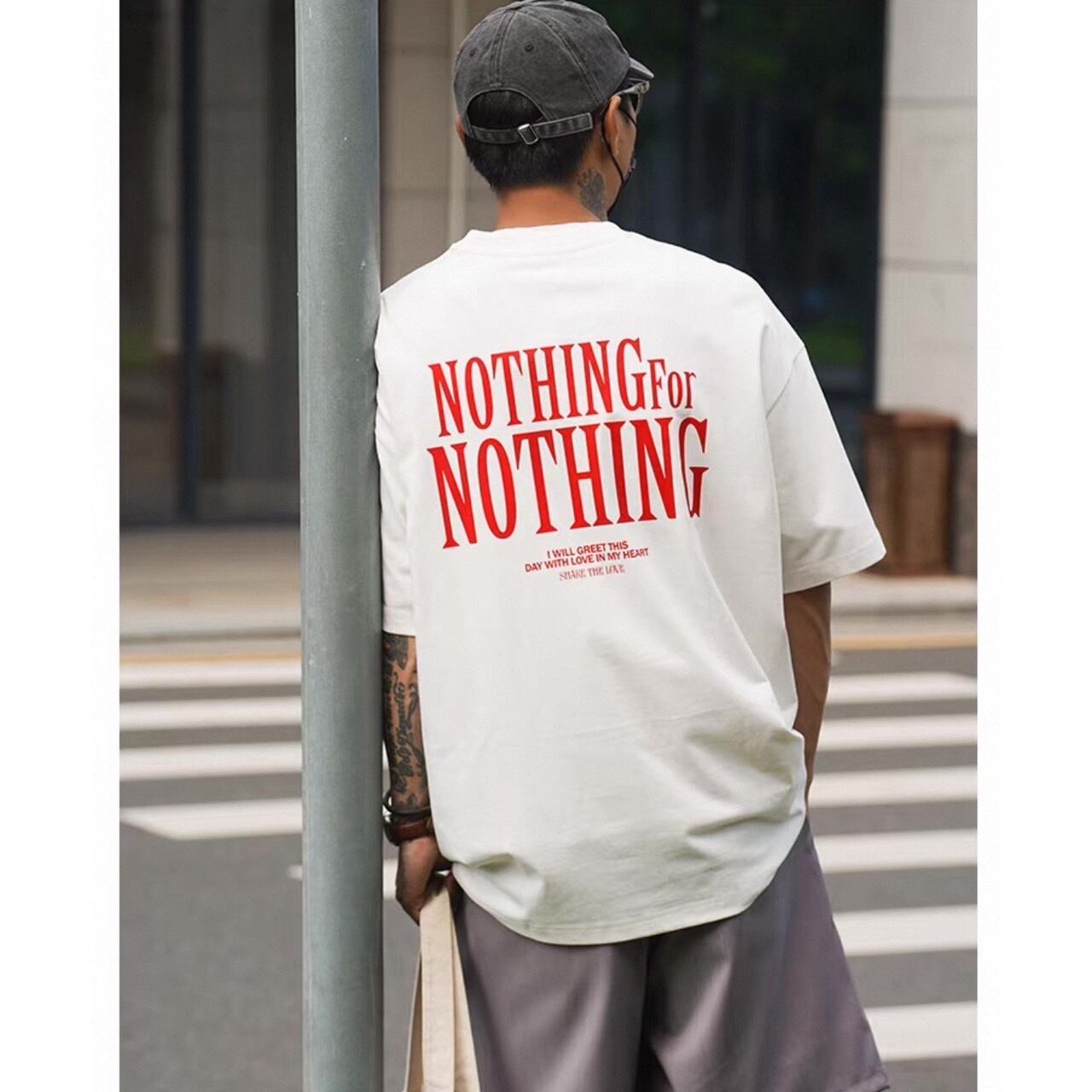 視線を集める大胆なバックプリントが印象的なグラフィックTシャツ。