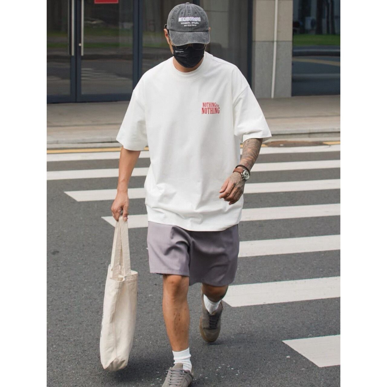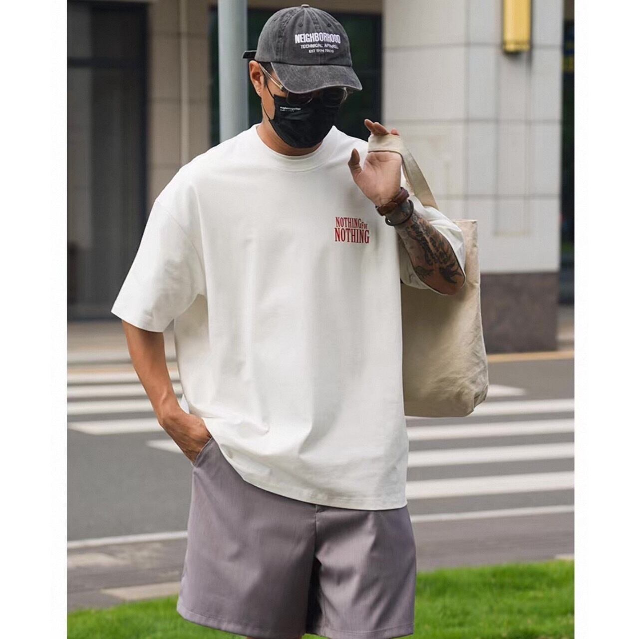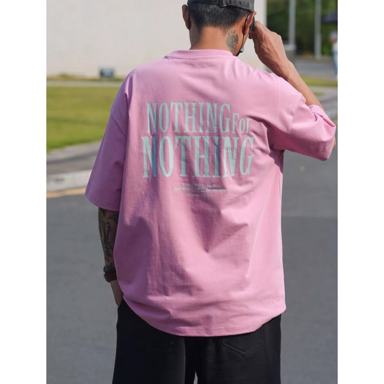 視線を集める大胆なバックプリントが印象的なグラフィックTシャツ。