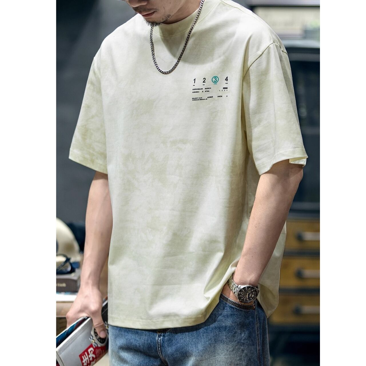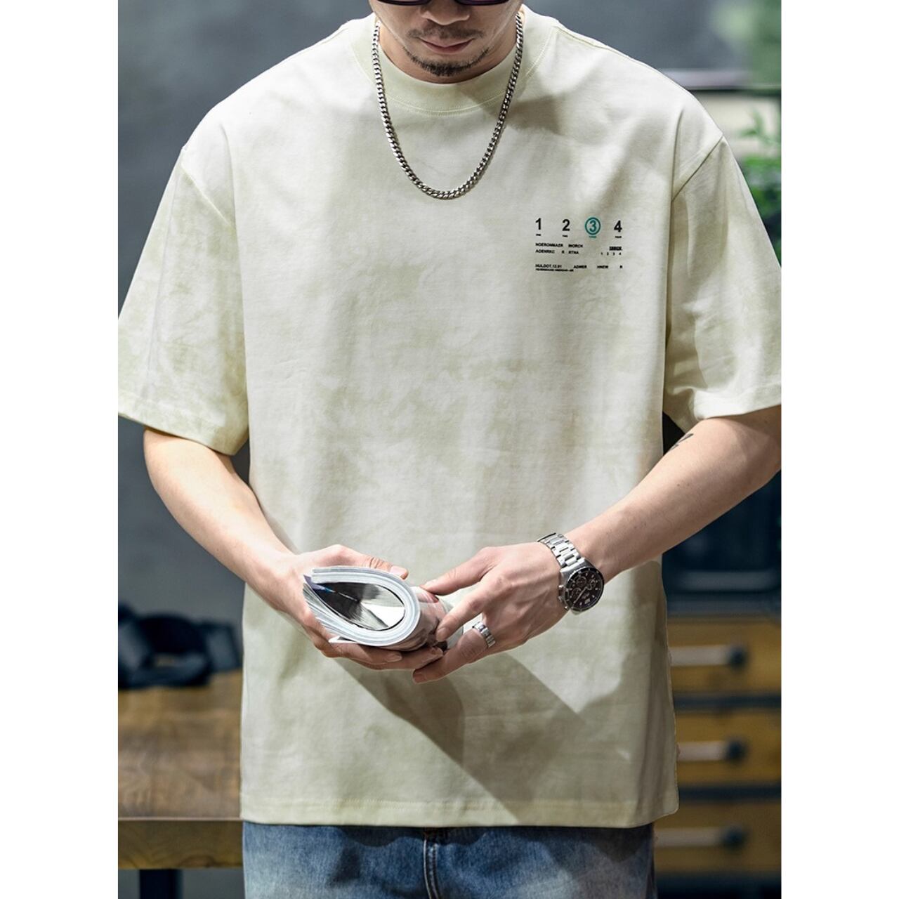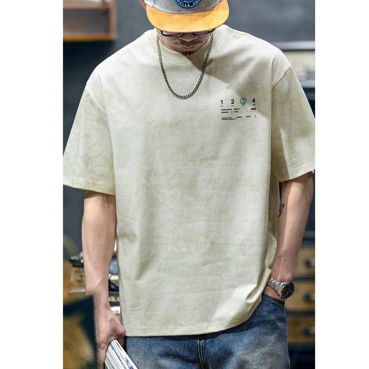 ゆとりのあるサイジングでラフに着こなせつつも、前後のプリントでしっかりと個性を主張。