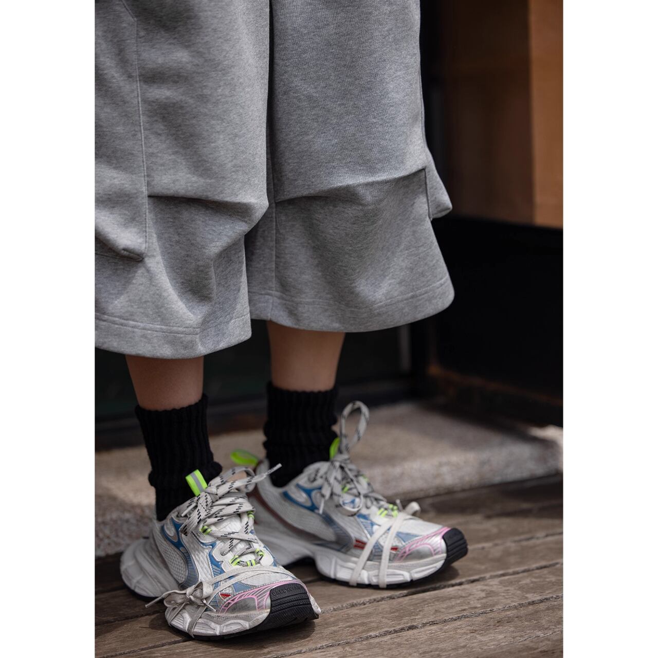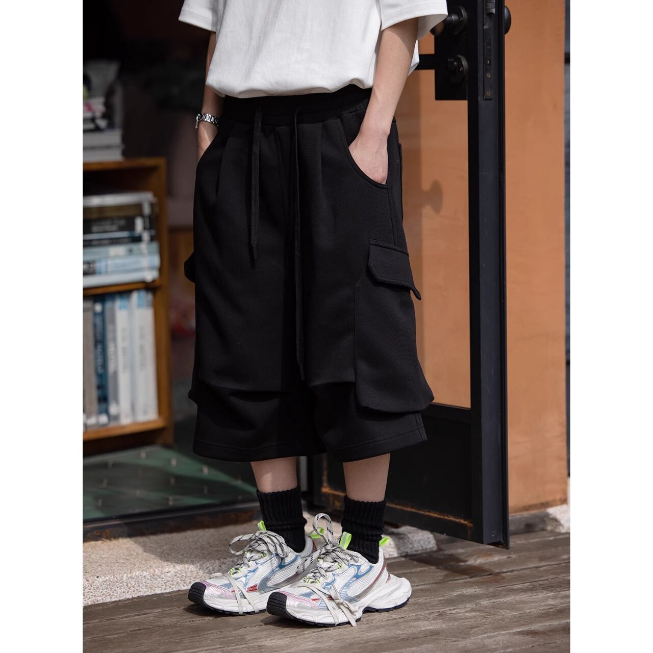シンプルなTシャツを合わせるだけでストリート感のある旬なコーデが完成します。