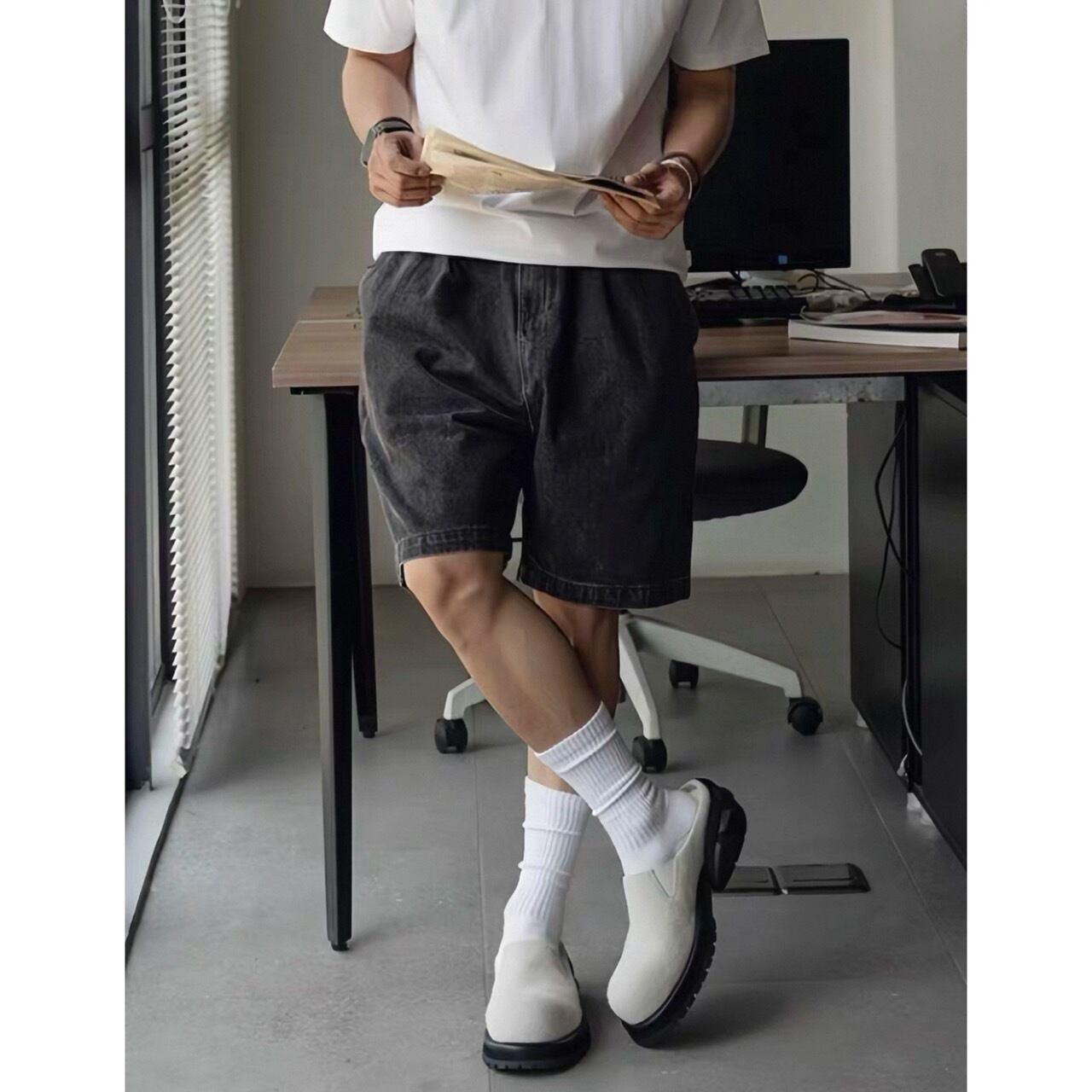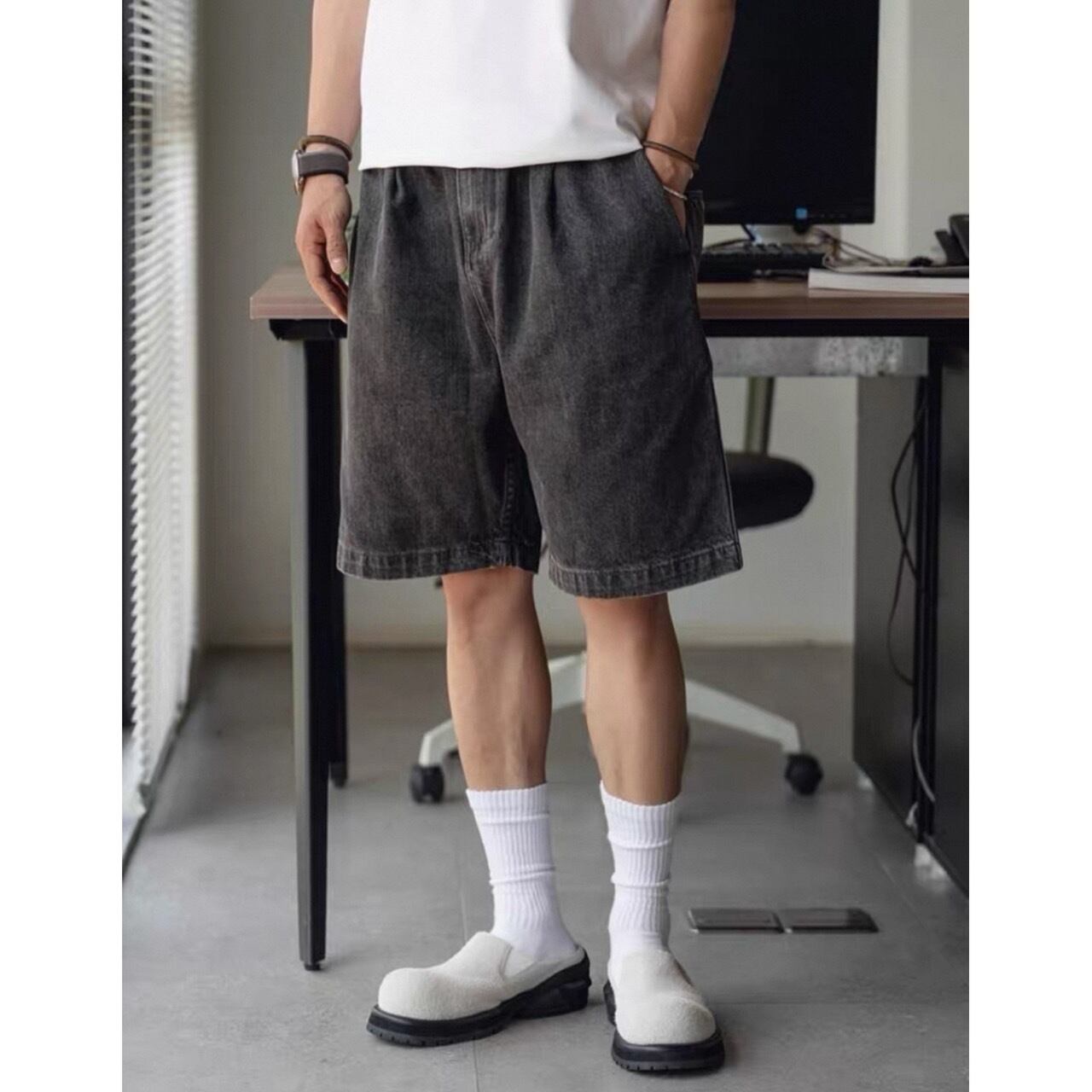 Side slit mid-length shorts 0733