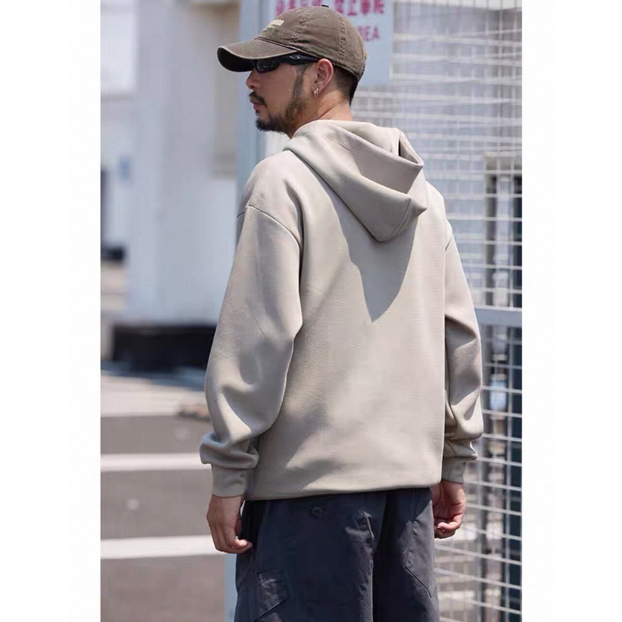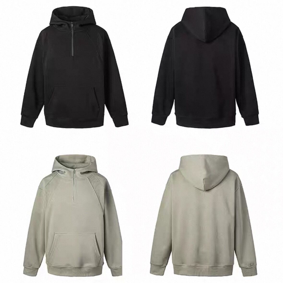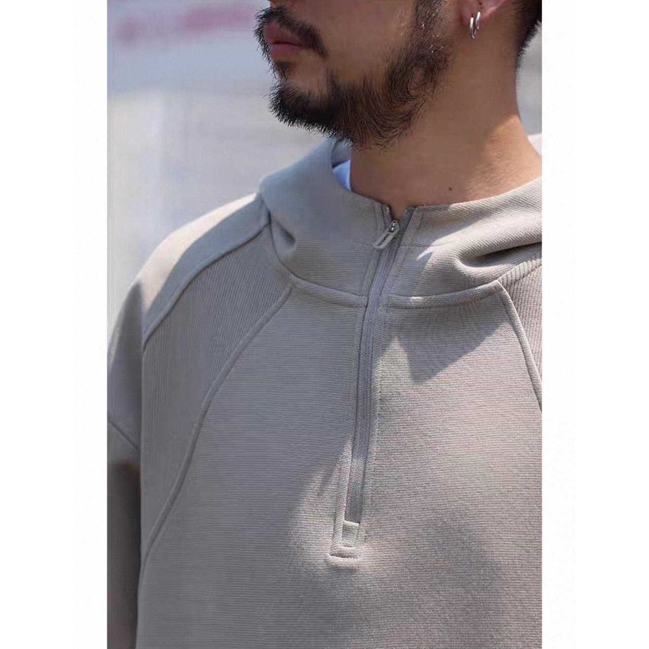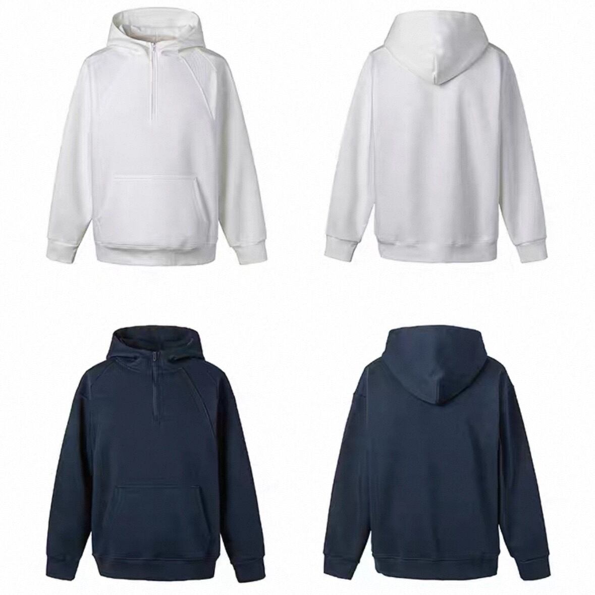 シンプルな中に程よい個性を加えたハーフジップフーディ。