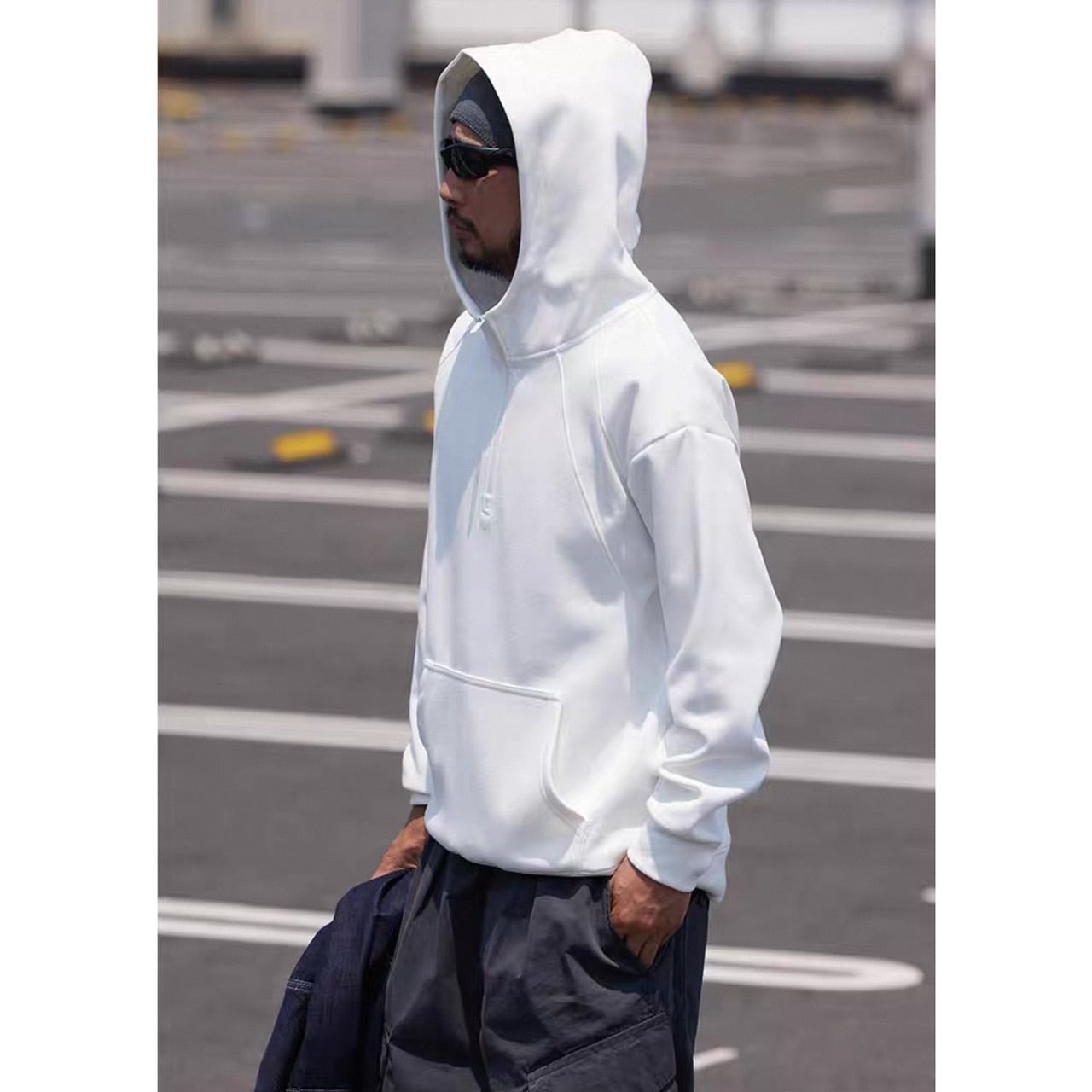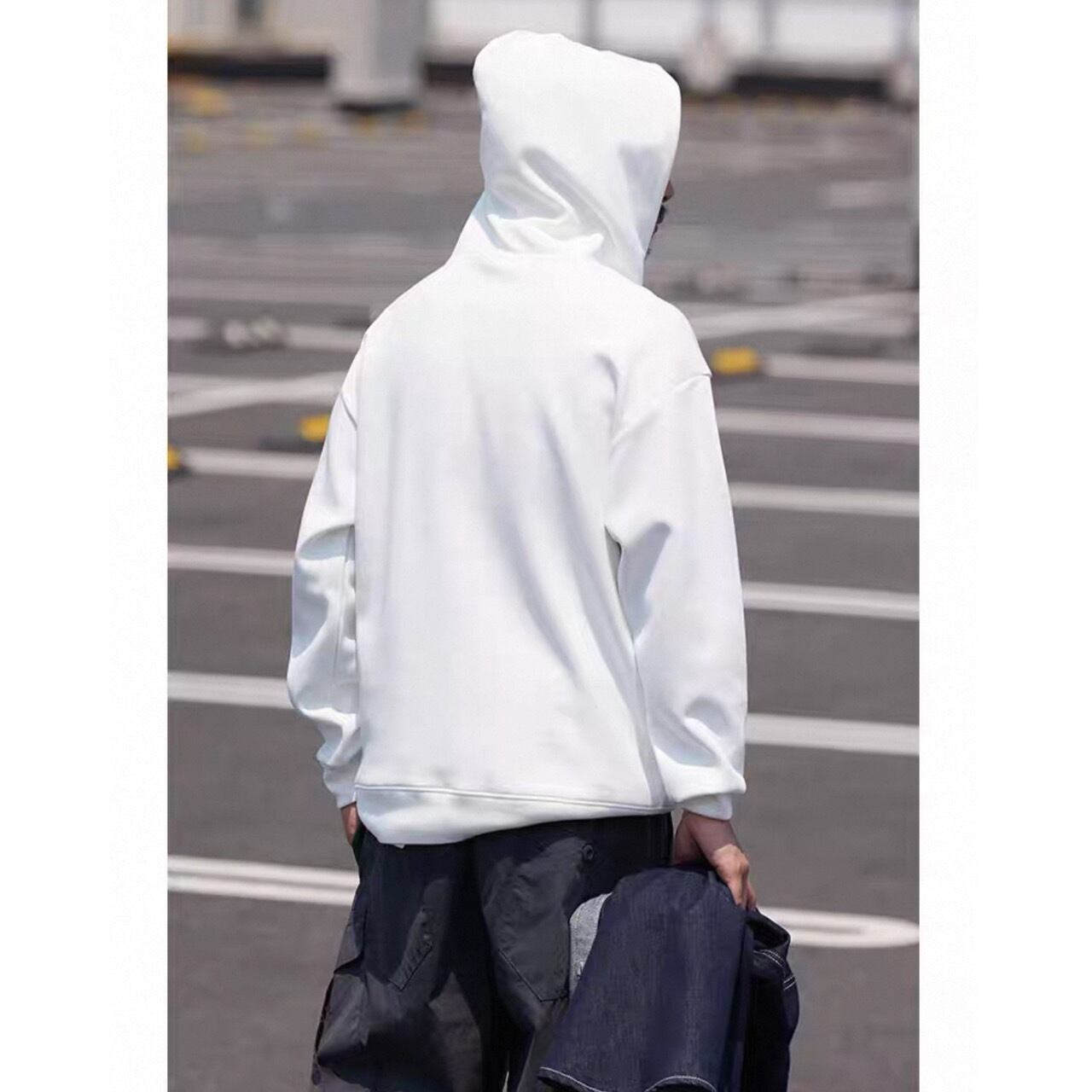 ミニマルなデザインはどんなスタイルにも馴染み、デニムやジョガーパンツなど幅広いボトムと好相性です。