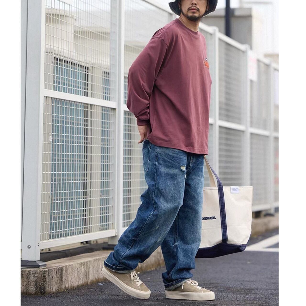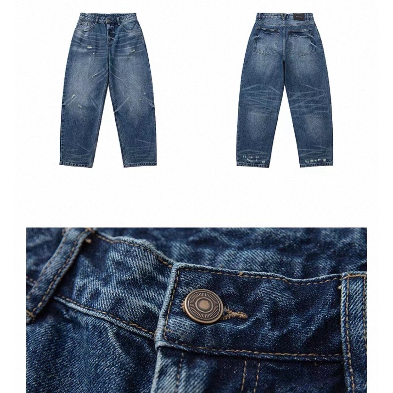 ヴィンテージ感漂うダメージ加工が魅力のルーズフィットデニム。
