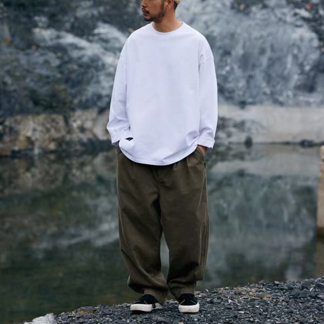 ベーシックなシルエットを少しオーバーサイズに仕上げることで、トレンド感と大人のこなれ感を両立しました。シンプルだからこそスタイリングの幅が広く、一枚着はもちろん、アウターのインナーとしても活躍します。