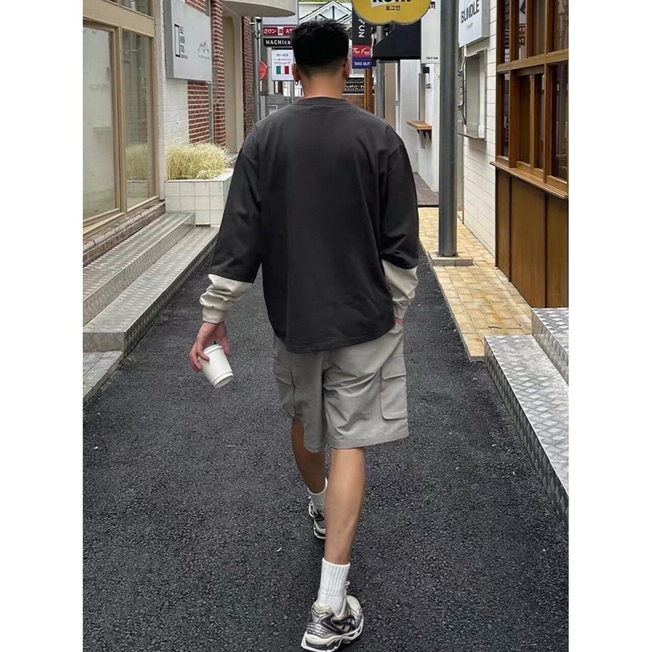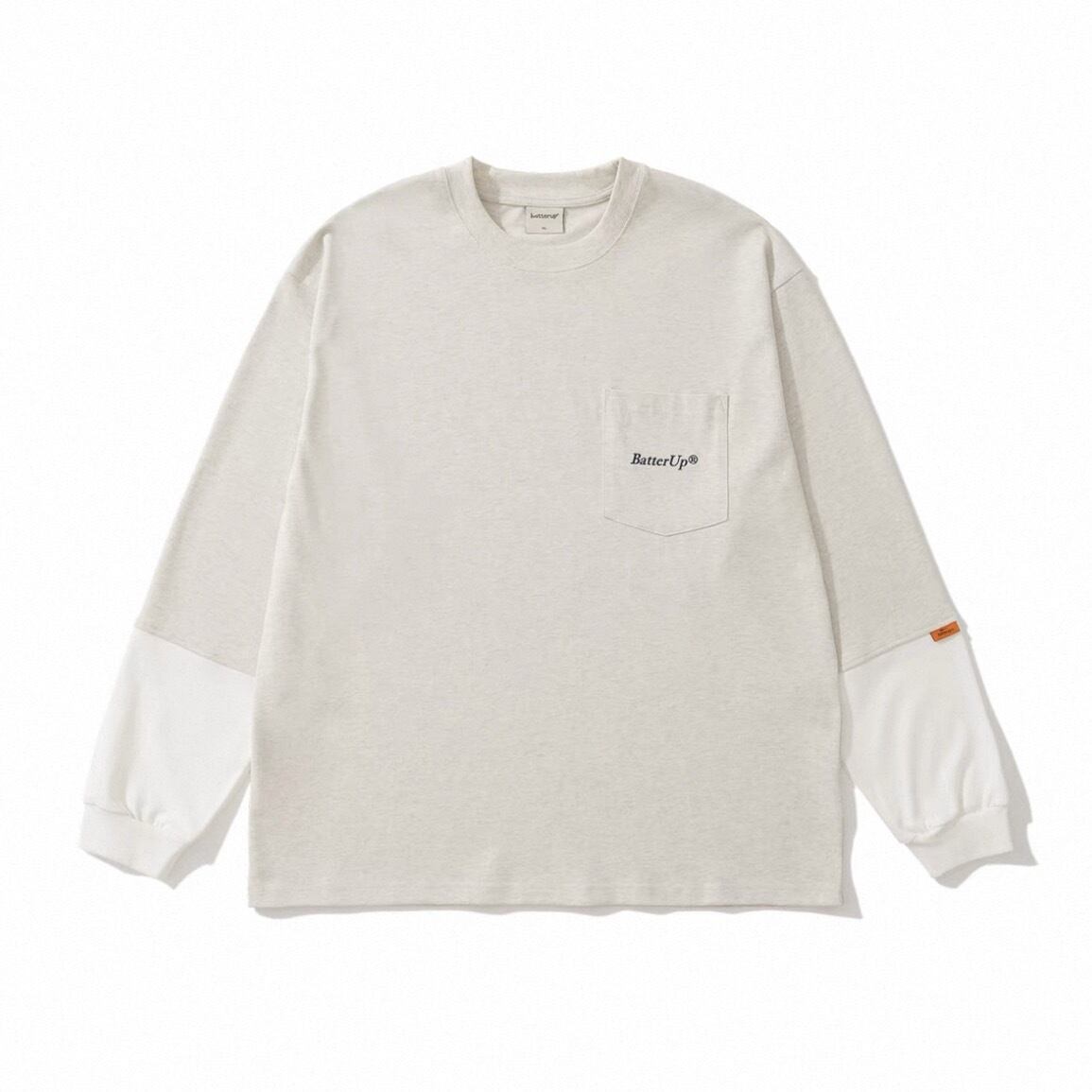 袖口からインナーがちらりと覗く重ね着風デザインがポイントのロンT。