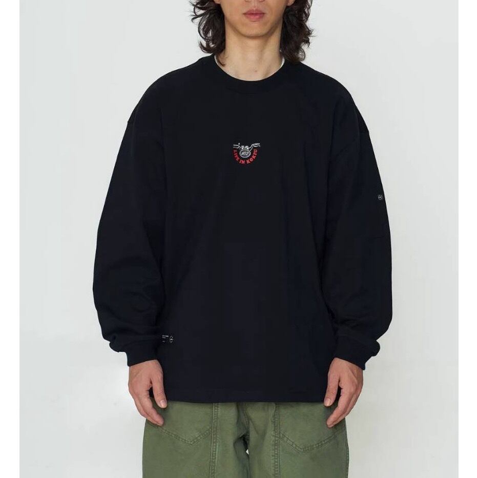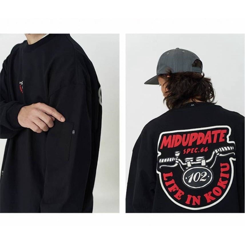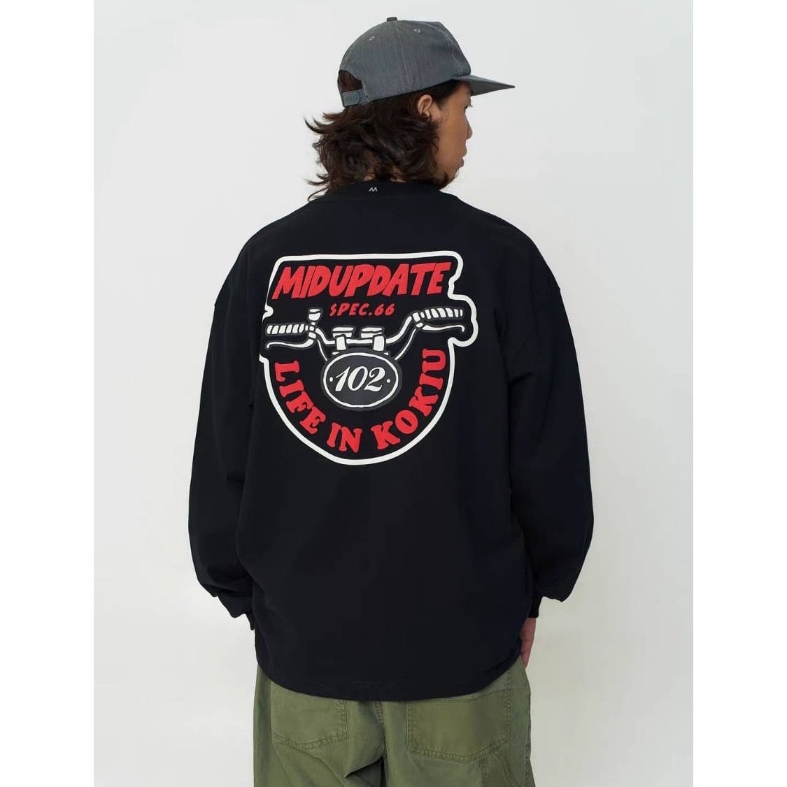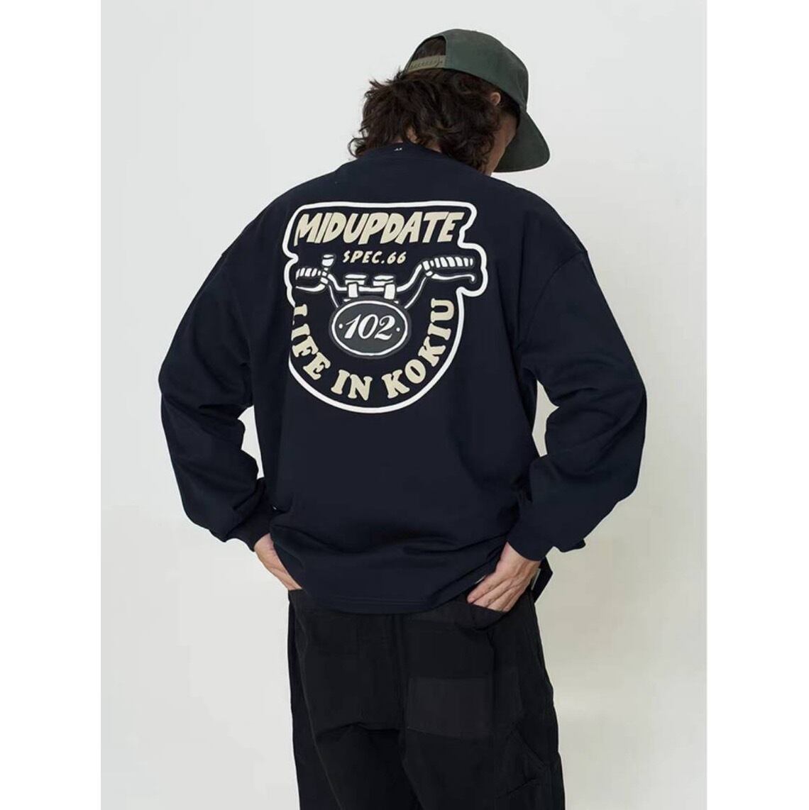 大胆なバイクグラフィックとカラーコントラストデザインがストリート感を演出します。