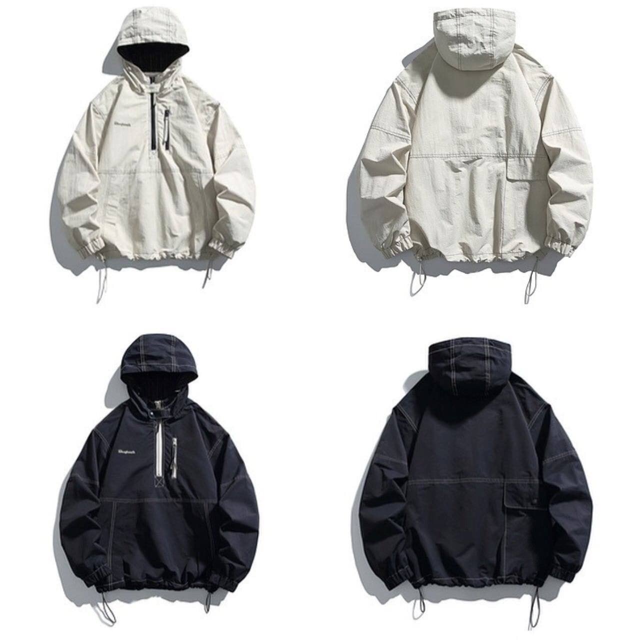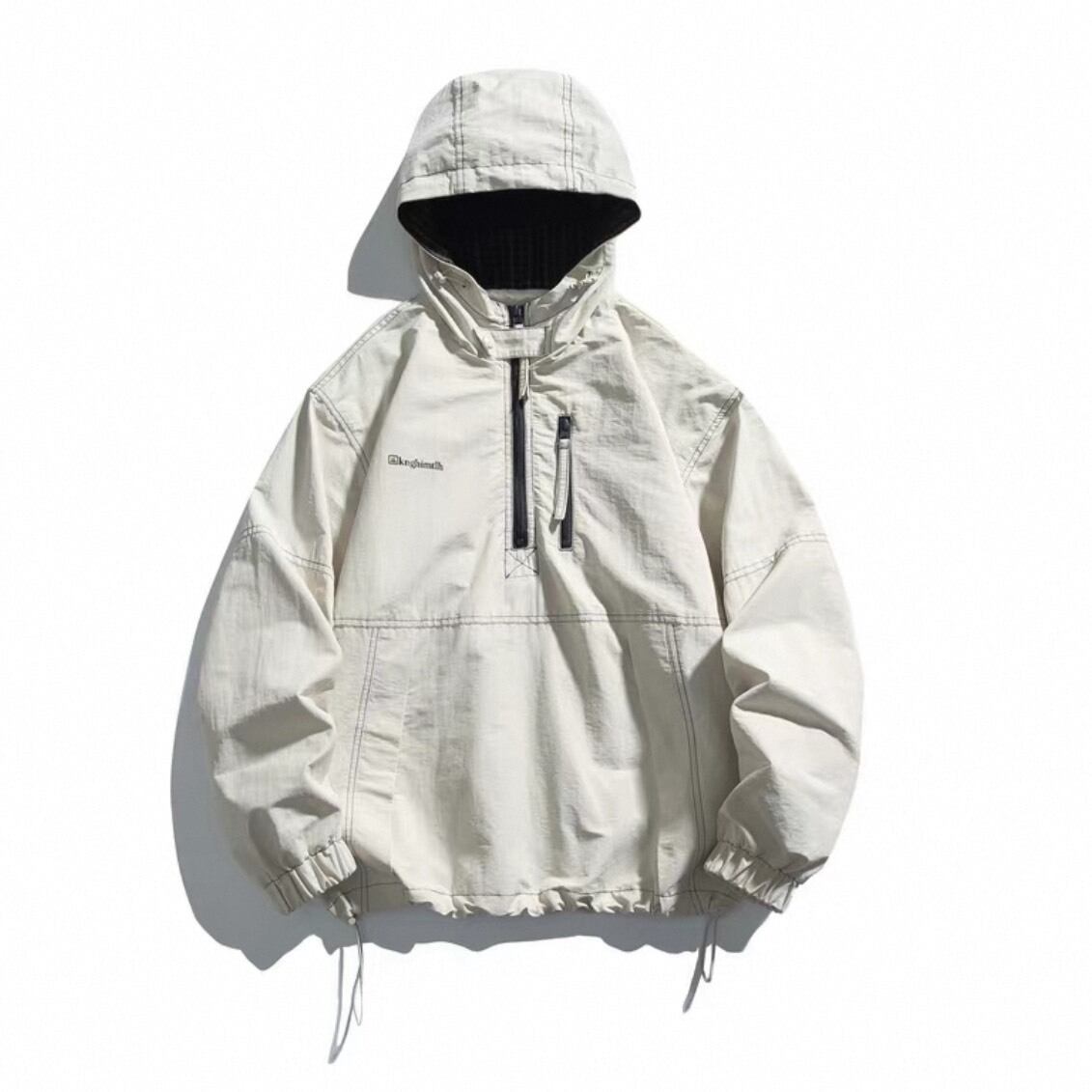 ハーフジップ仕様が特徴のアノラックパーカー。