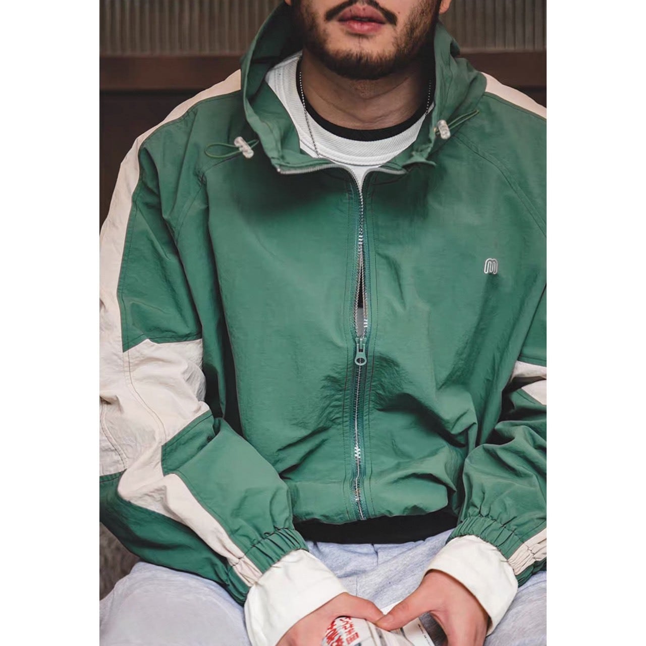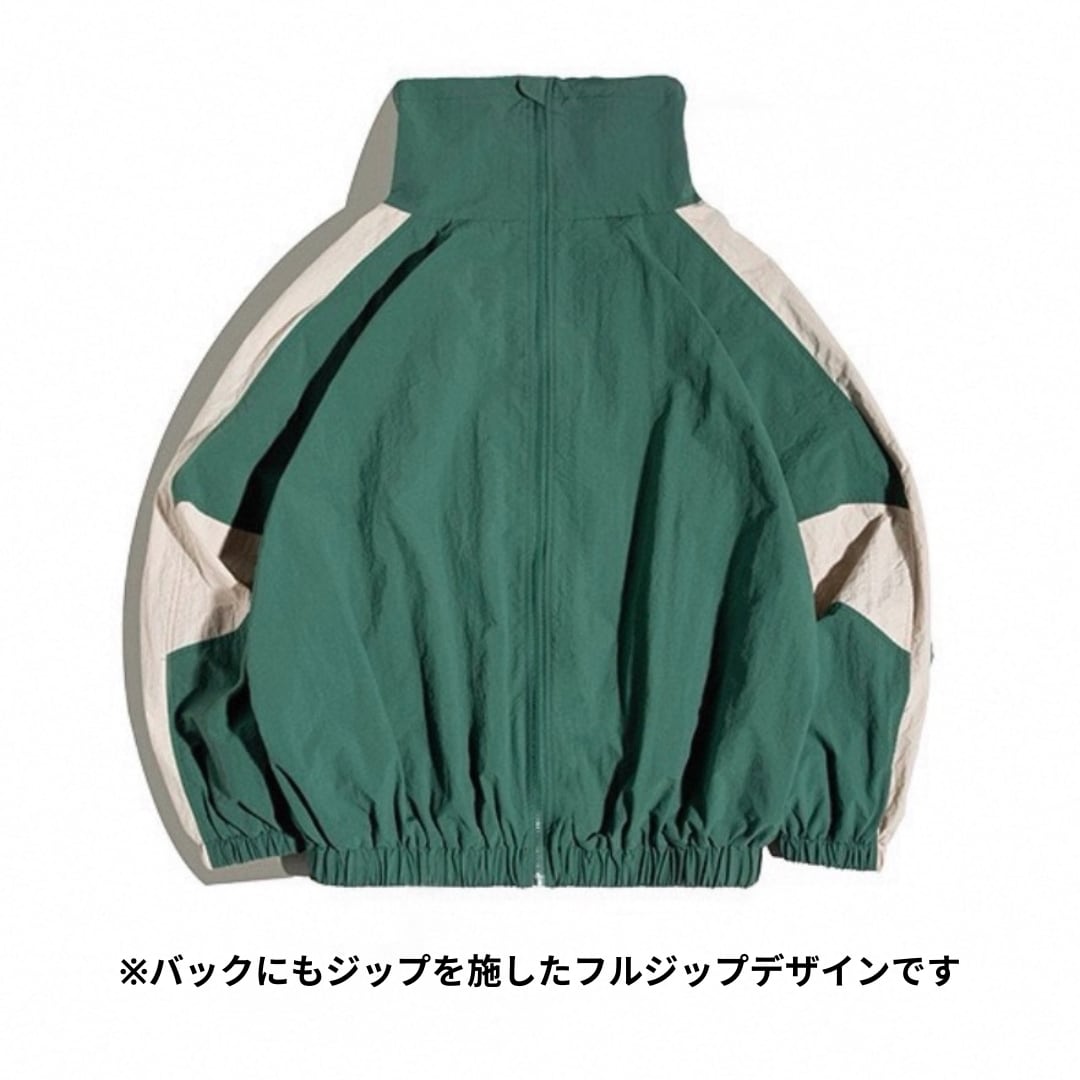 前後どちらからも開閉できるフルジップ仕様が特徴のトラックジャケット。