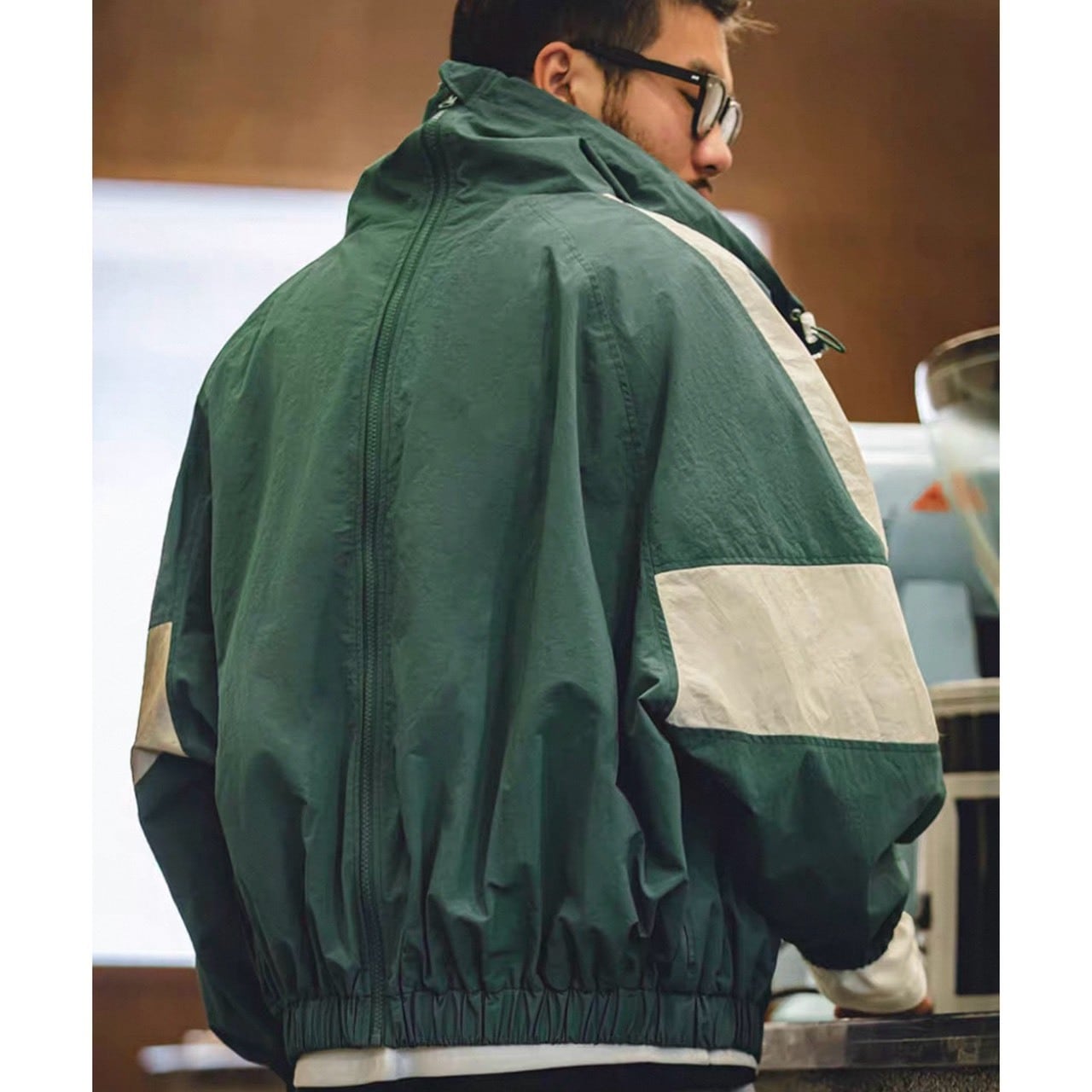 配色ラインが映えるルーズシルエットで、羽織るだけでストリート感ある印象に。