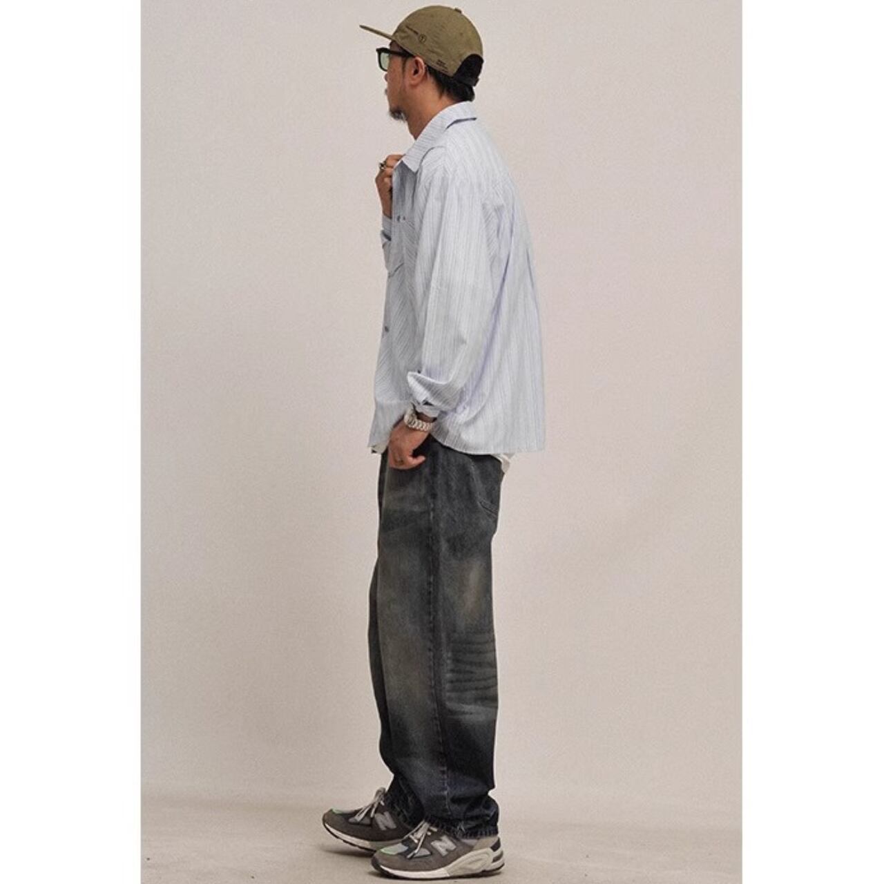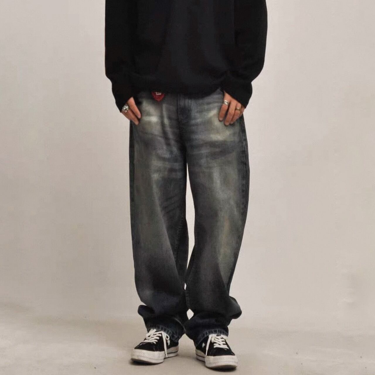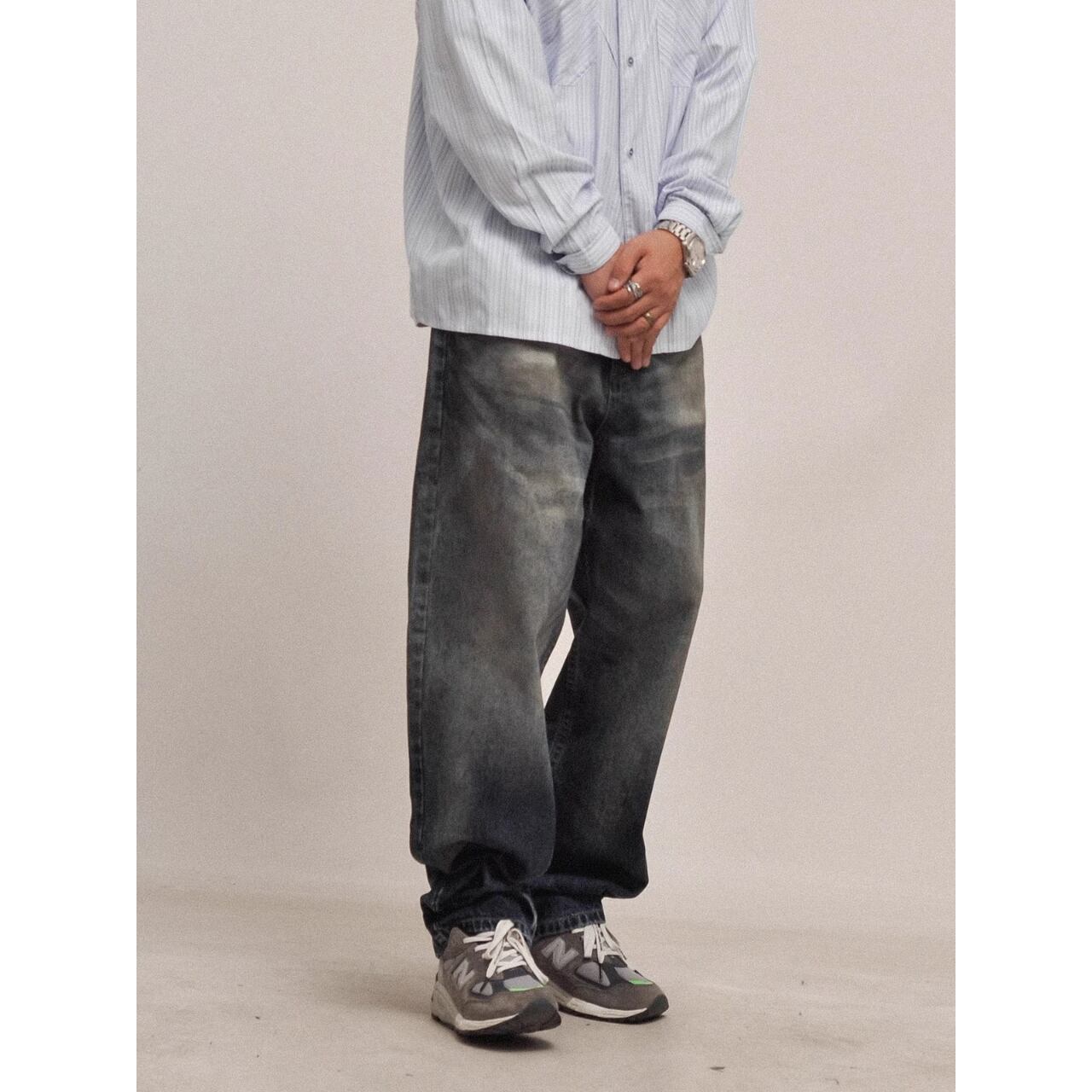 ヴィンテージ感のある色落ちが魅力のワイドデニムパンツ。