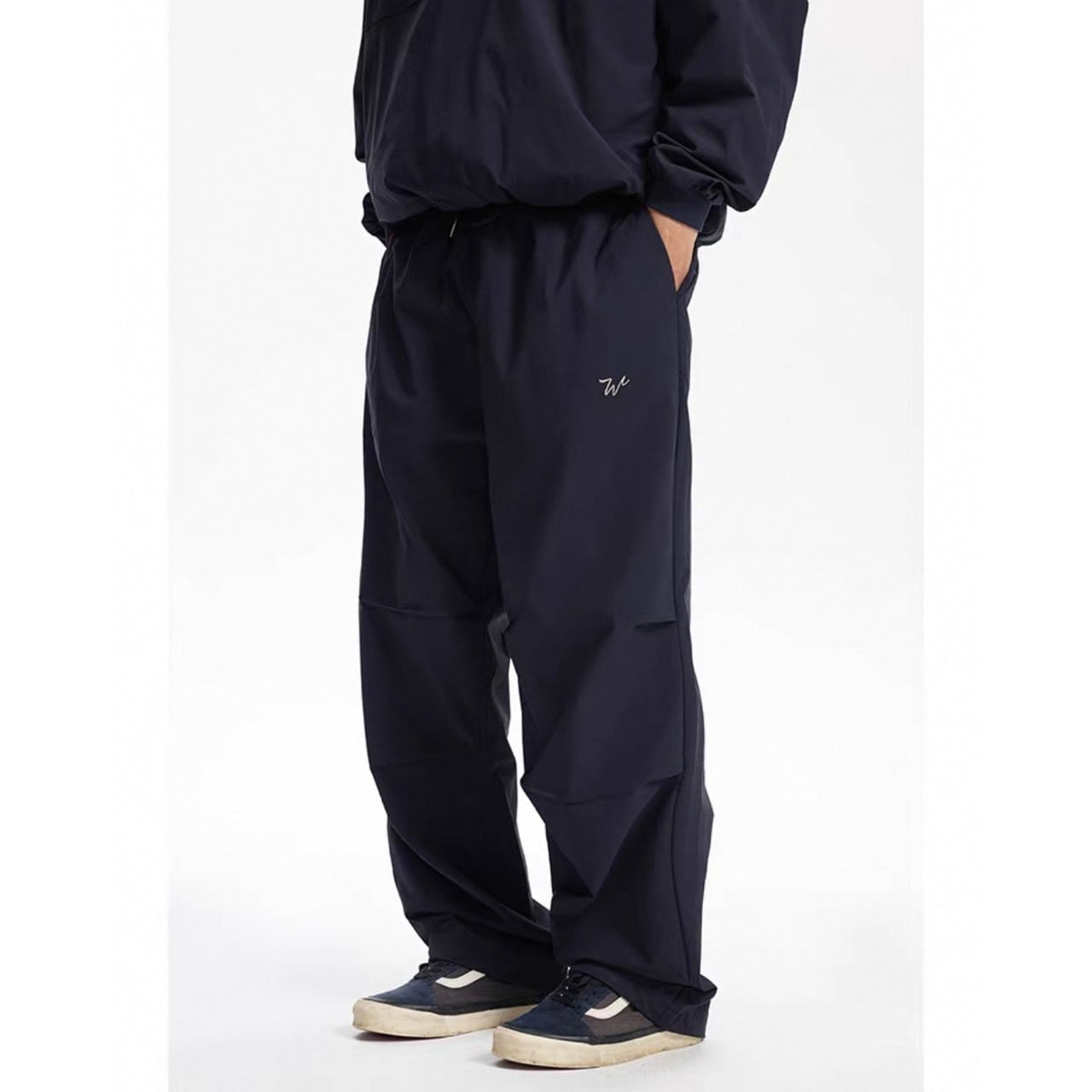 リラックス感のあるワイドシルエットが魅力のトラックパンツ。