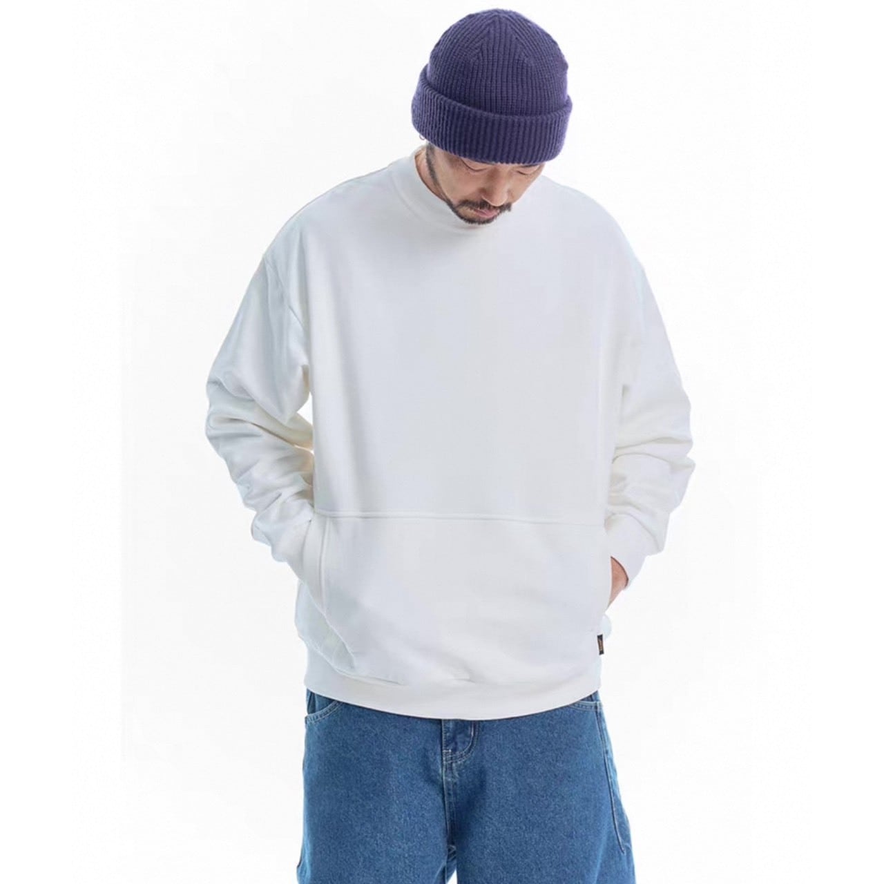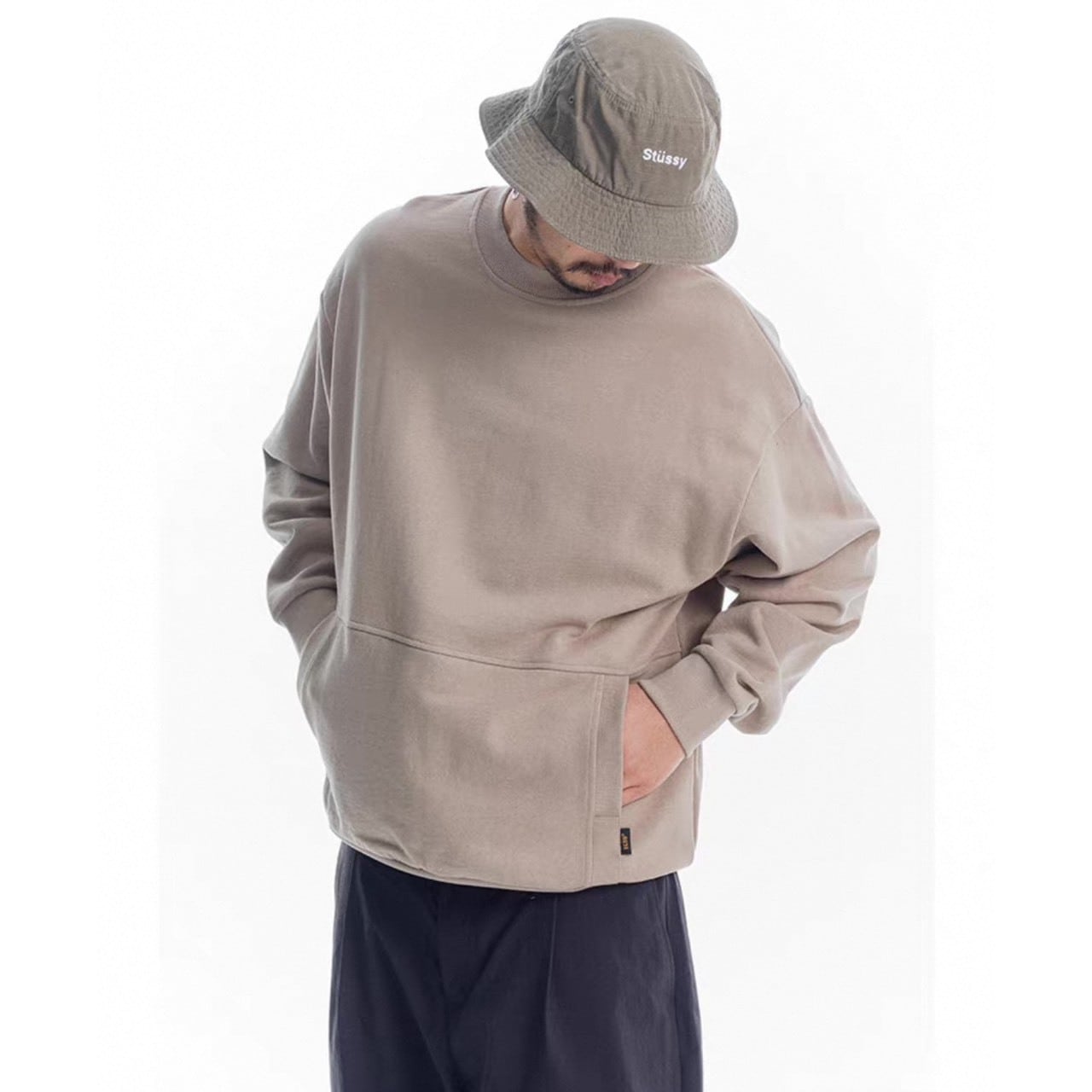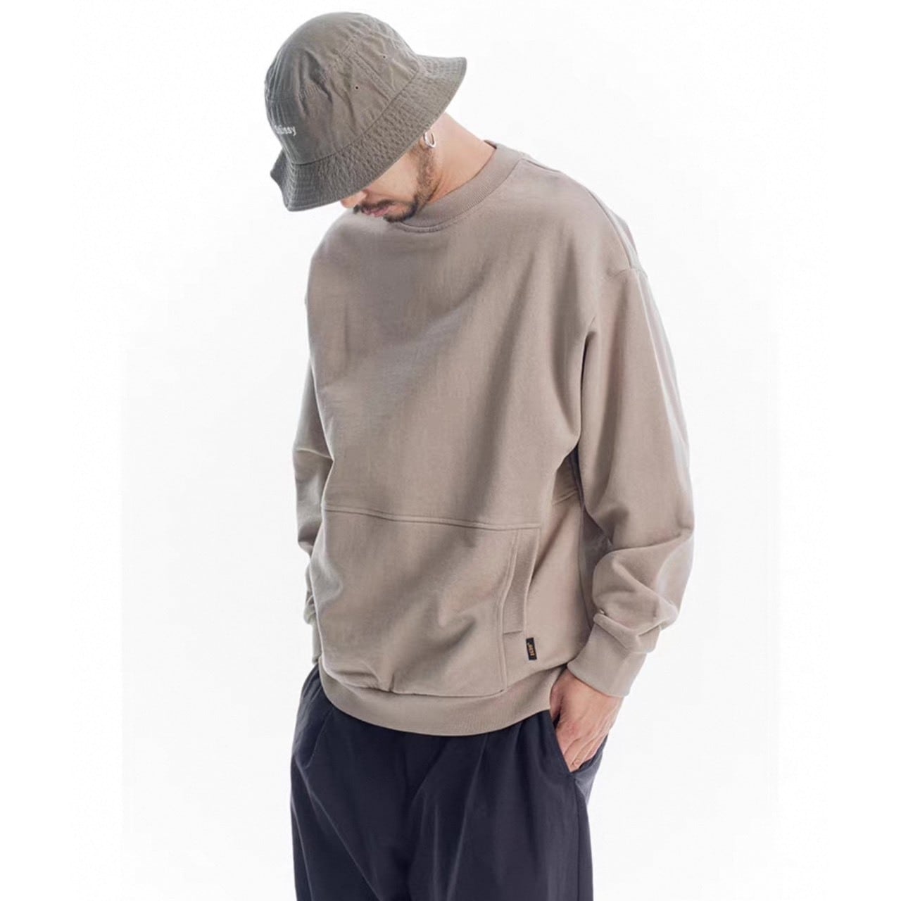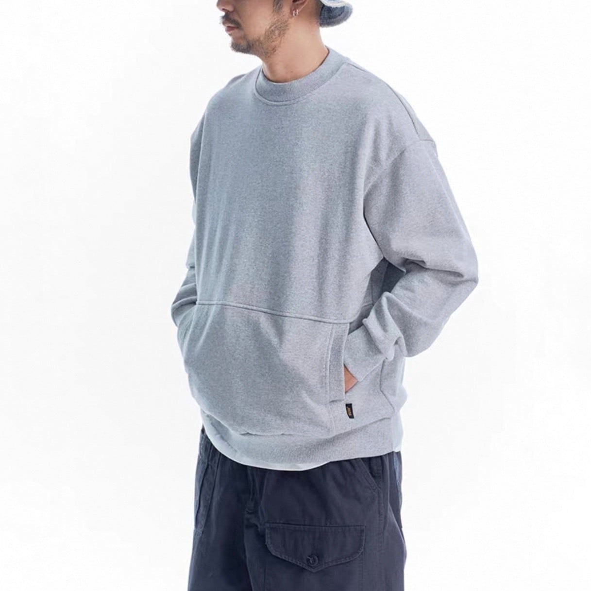 フロントに大きなポケットを施した、ミニマルなデザインのクルースウェット。