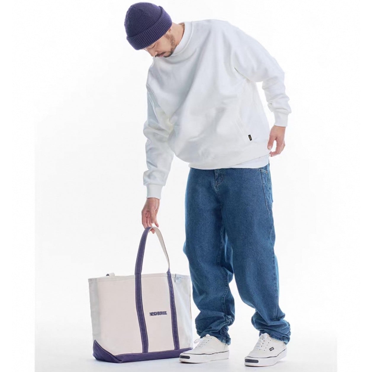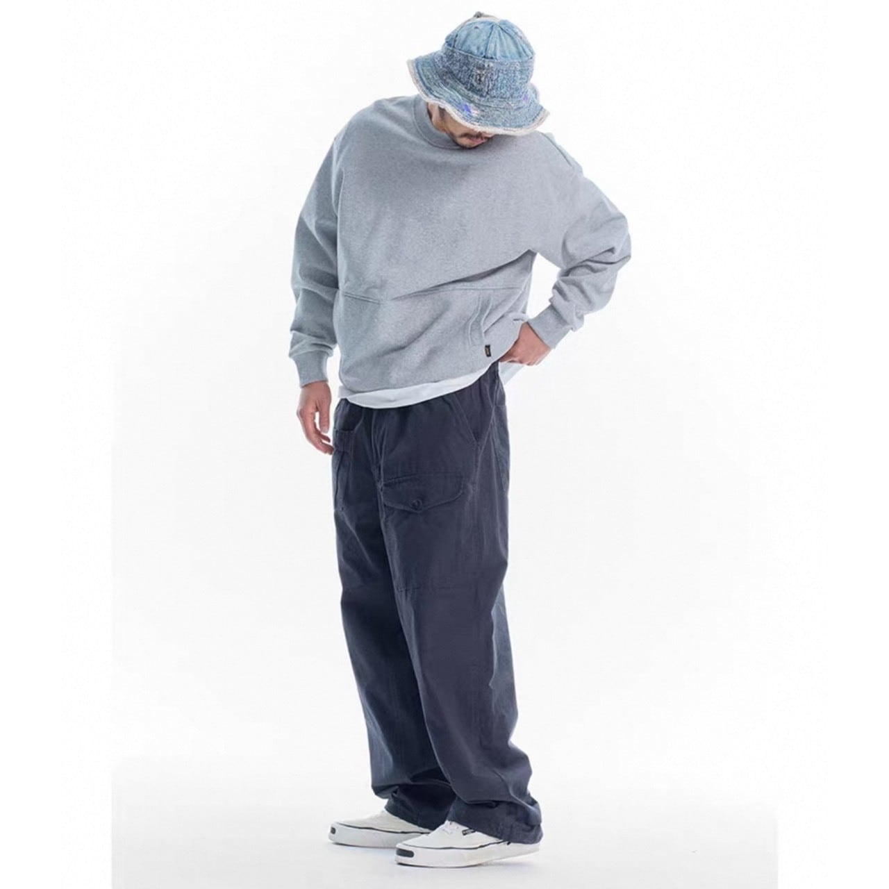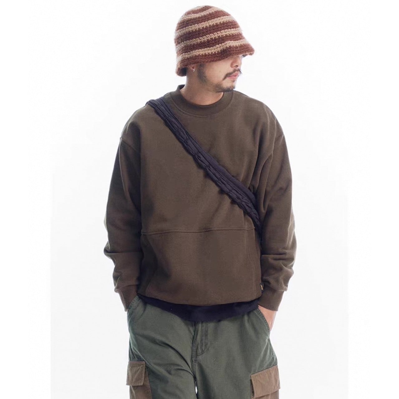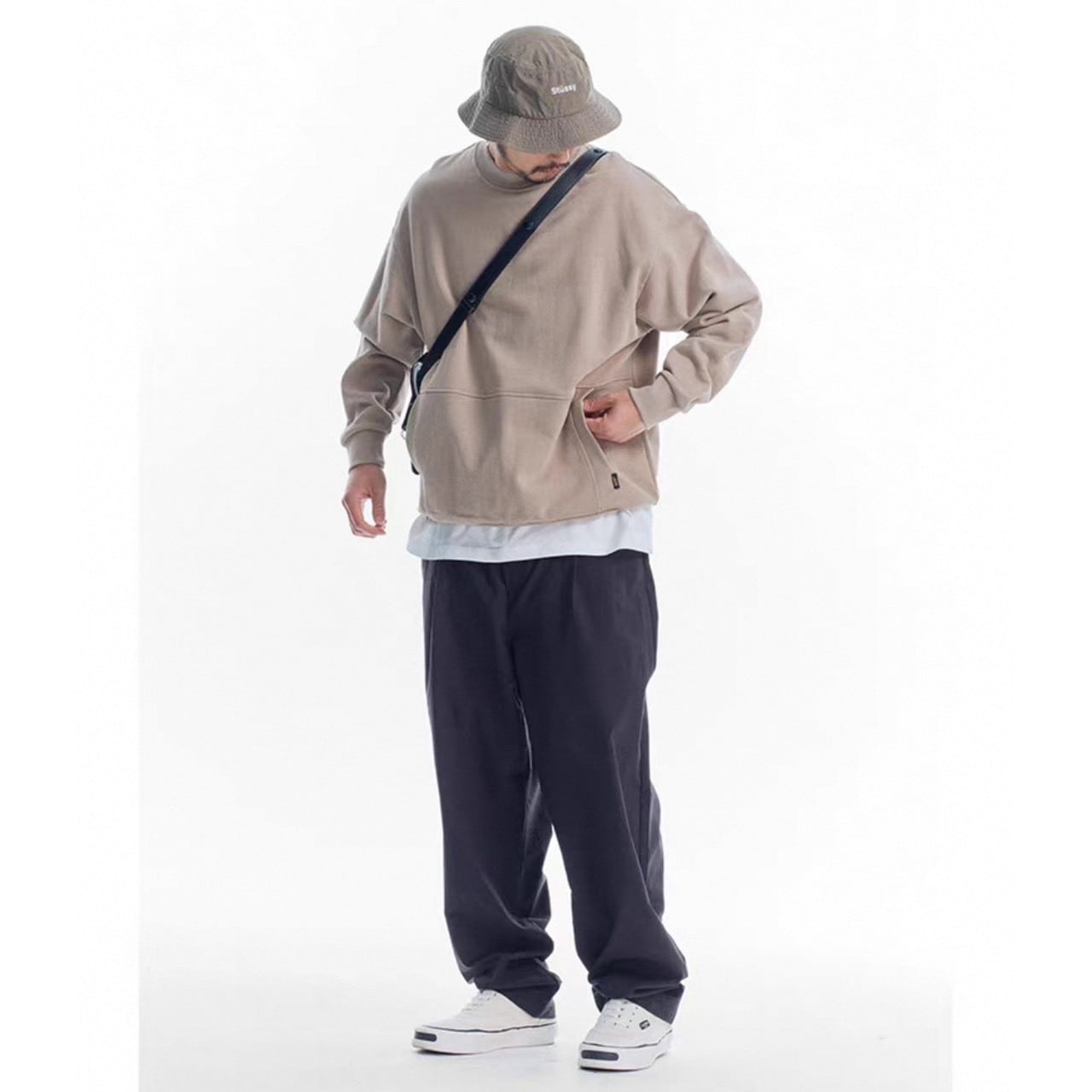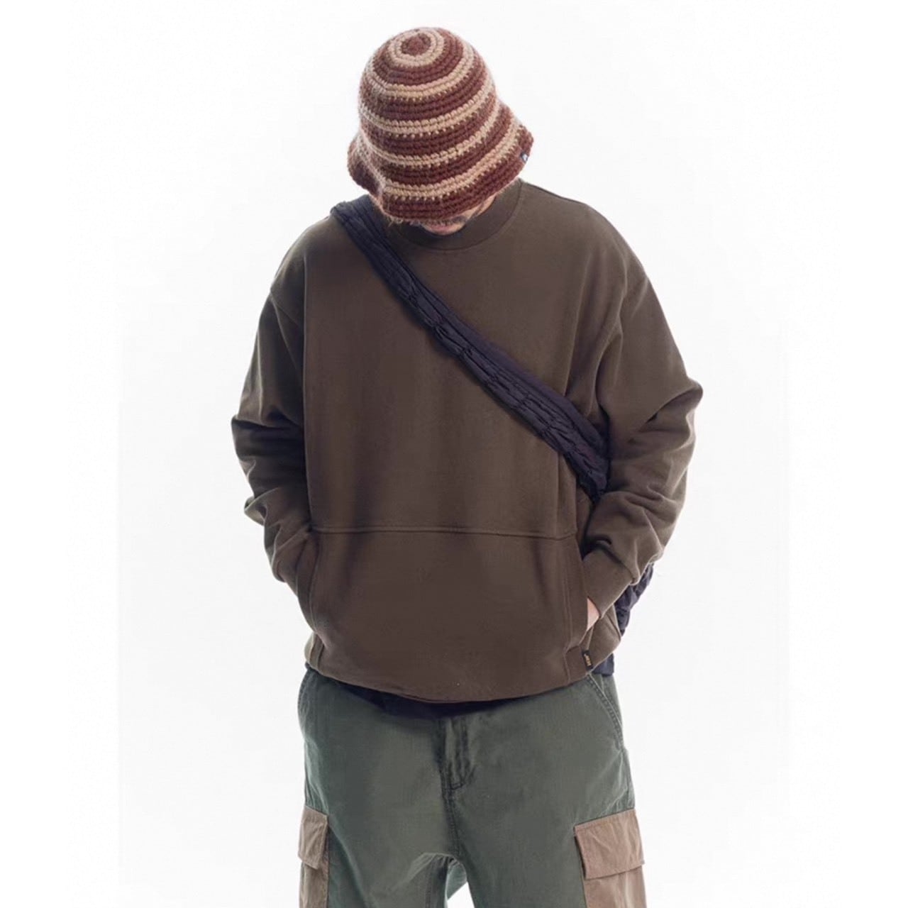 フロントに大きなポケットを施した、ミニマルなデザインのクルースウェット。