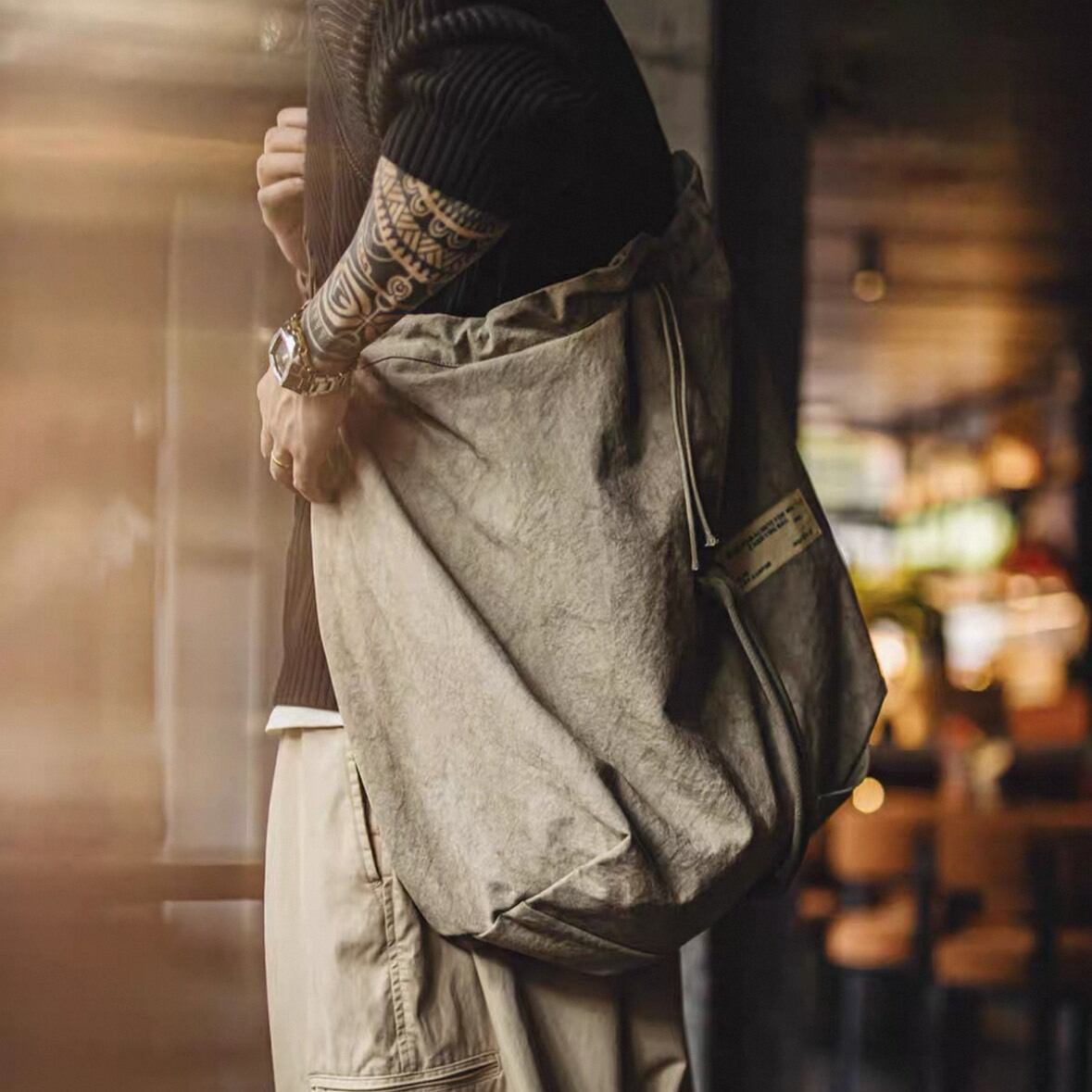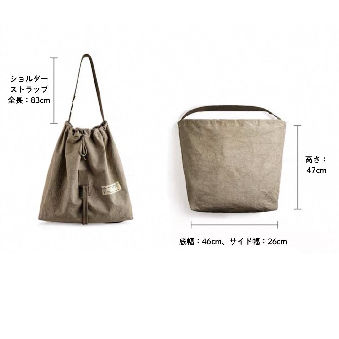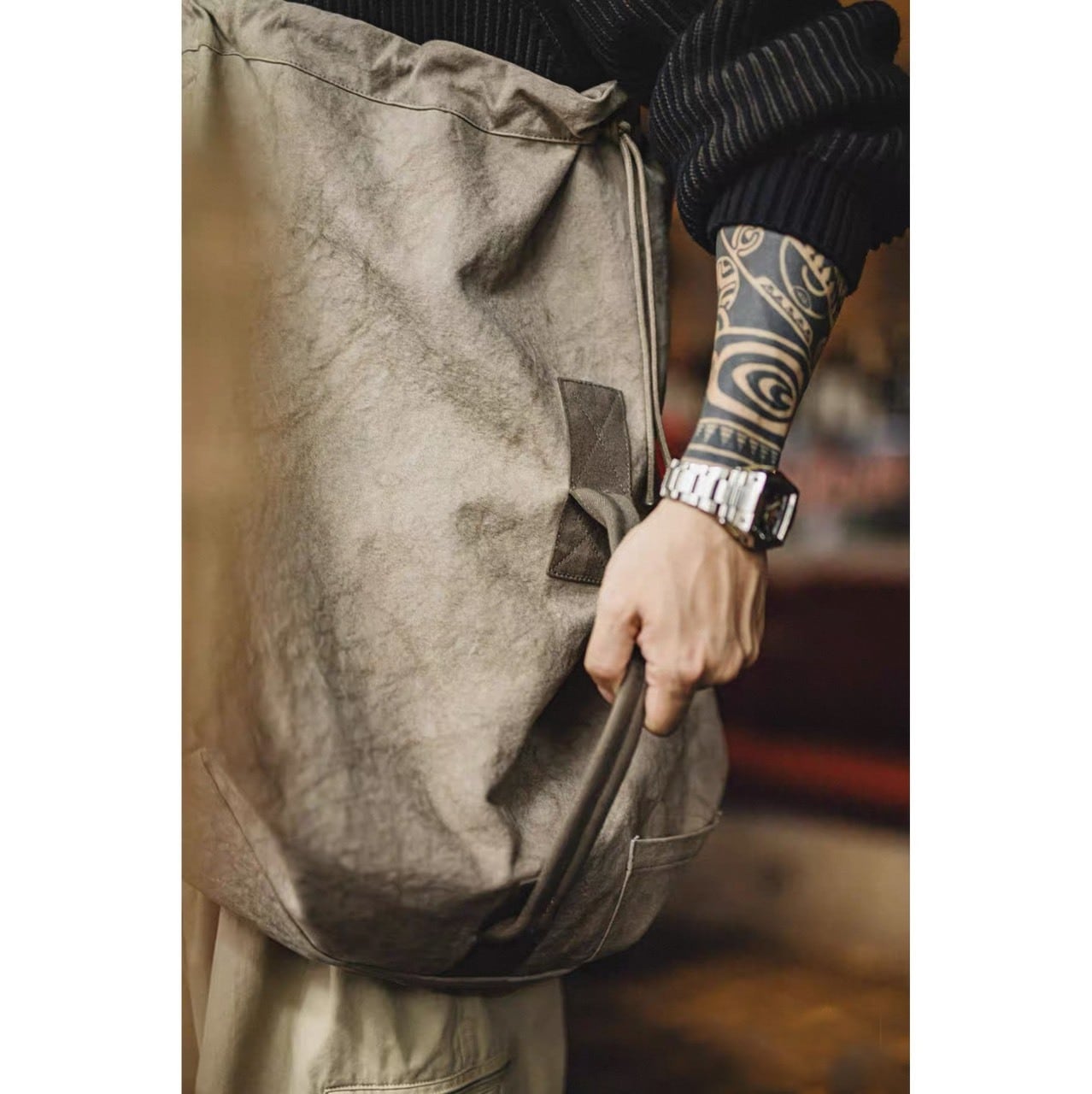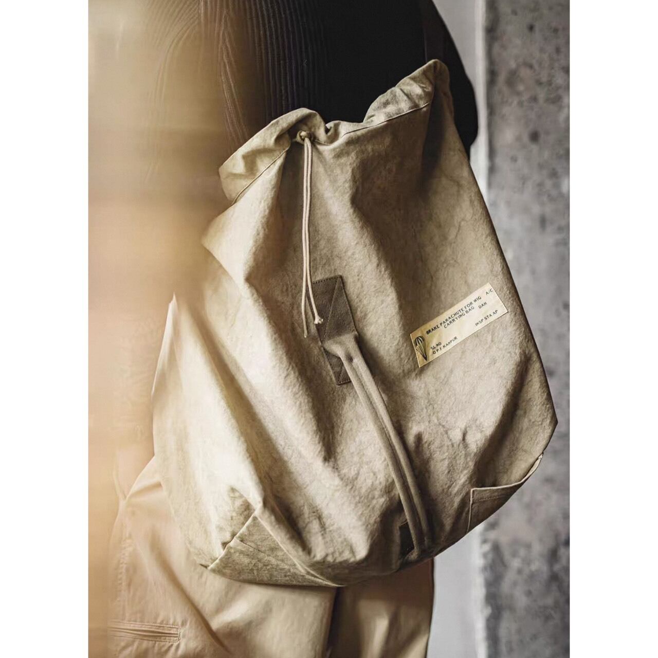 巾着のようなドローストリング仕様で、大容量ながらも軽快な印象を与えます。