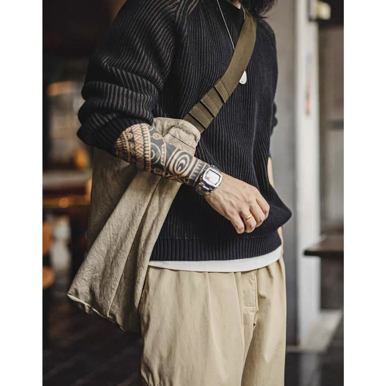 無骨なミリタリーデザインが魅力のショルダーバッグ。