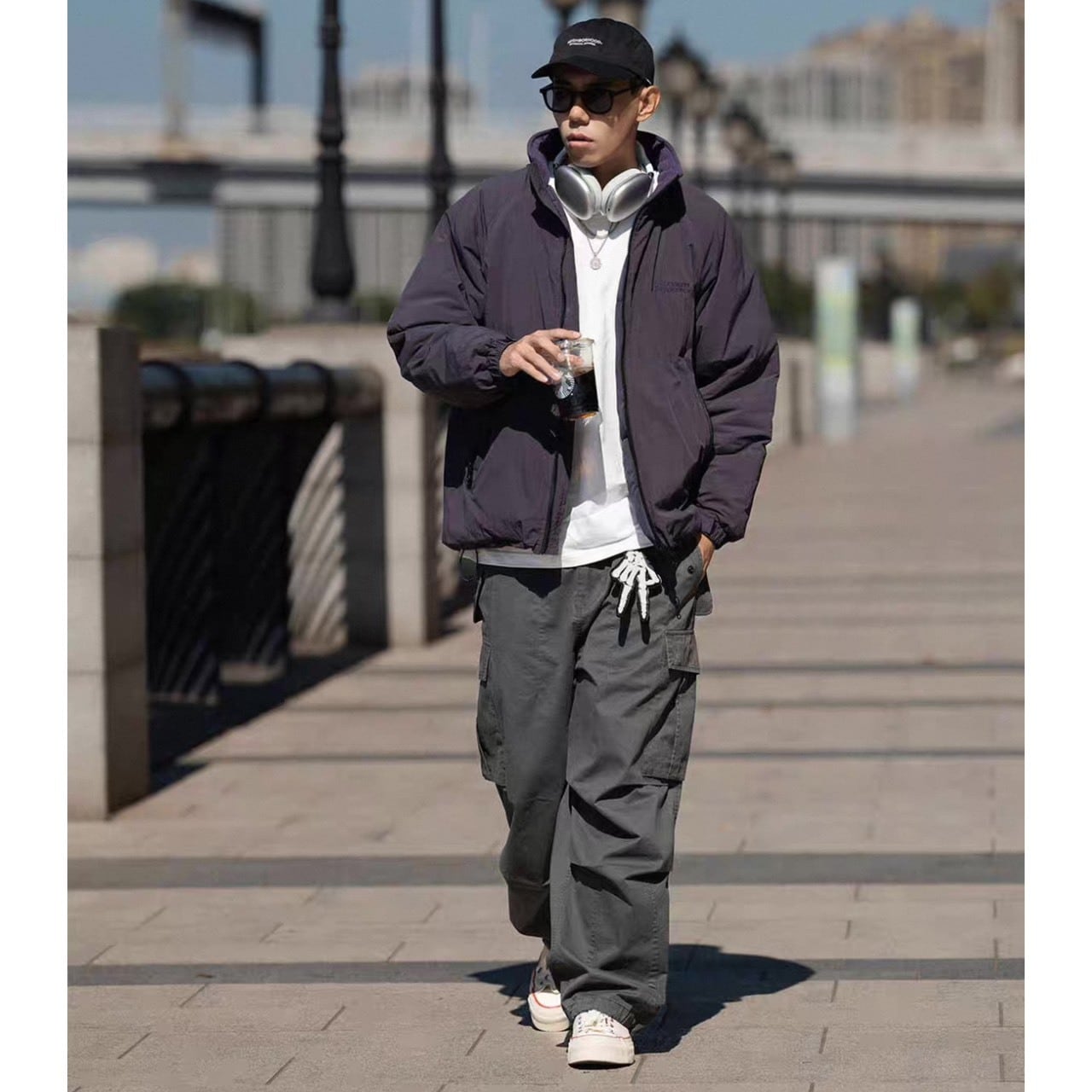 インナーにスウェットやパーカーを合わせてもバランスが良く、寒暖差のある季節にも重宝します。