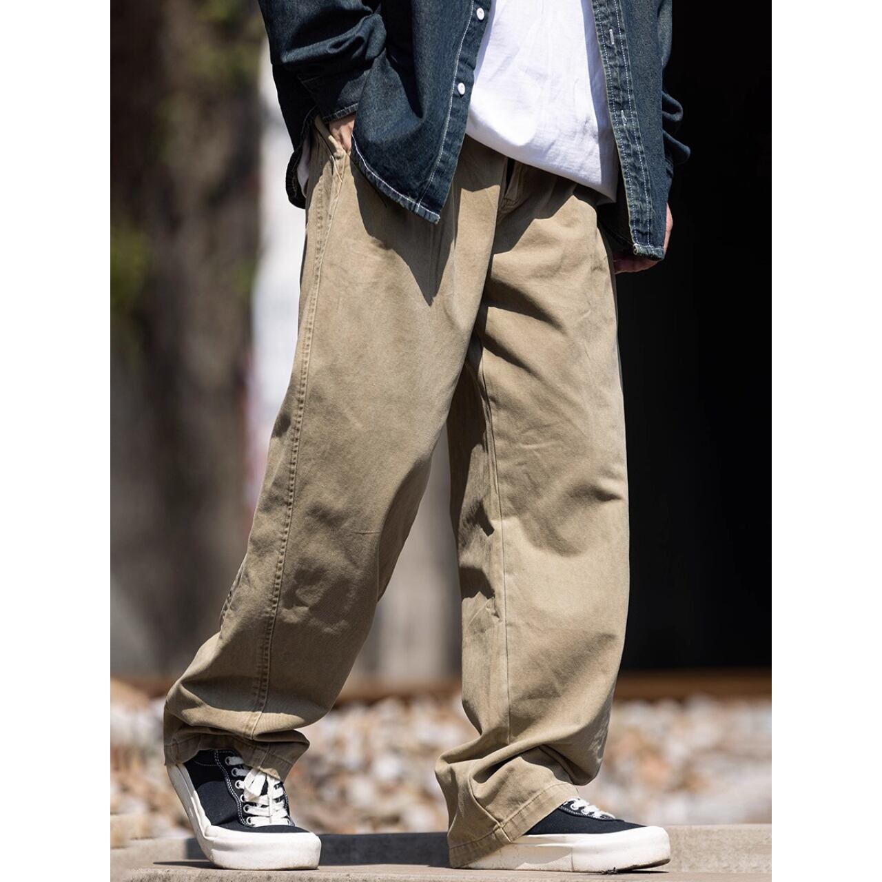 トレンドのルーズシルエットを取り入れたワークチノパンツ。