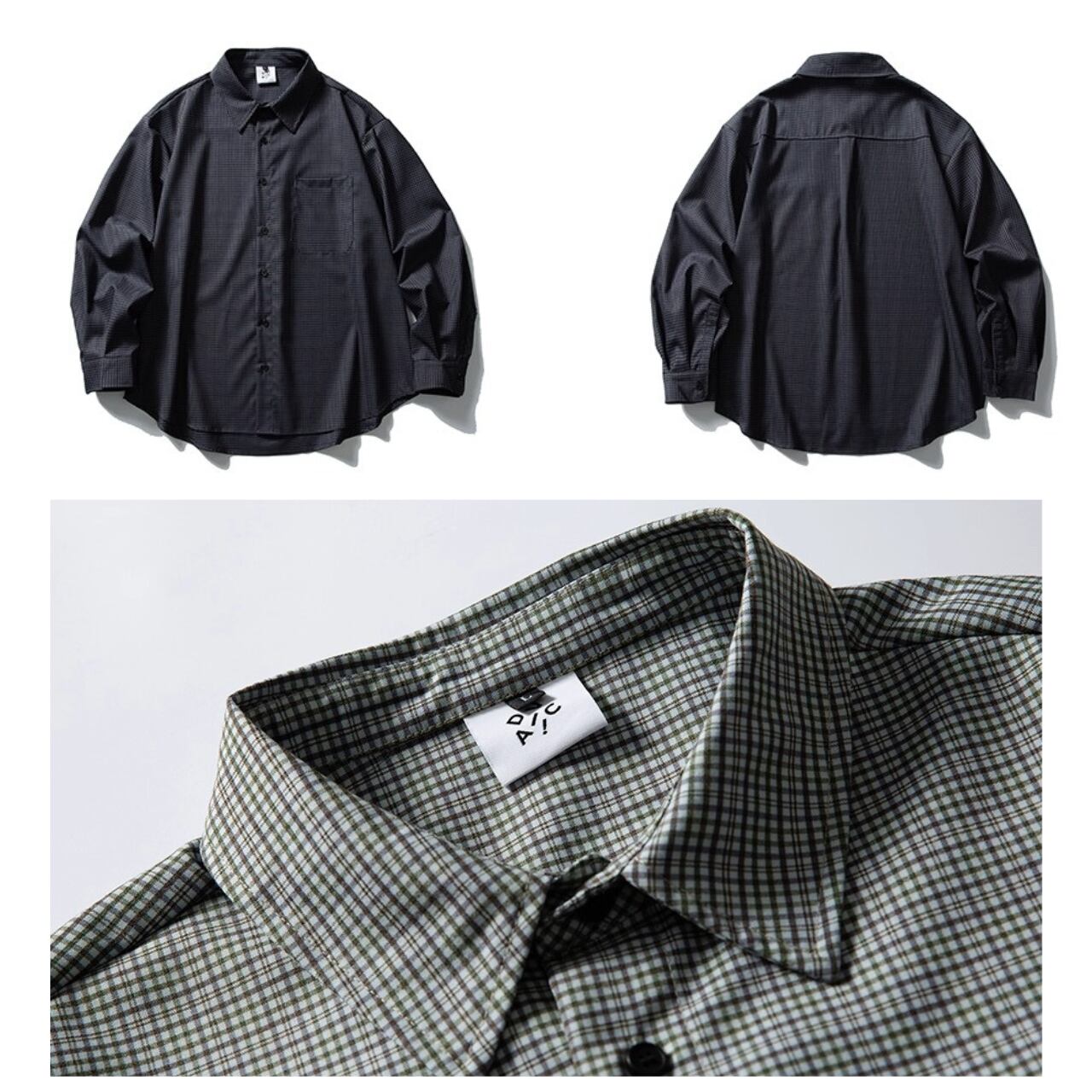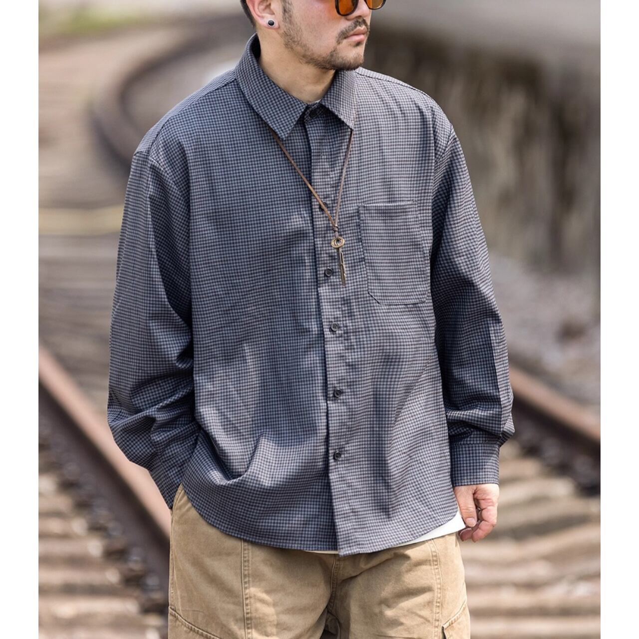 小さめのチェック柄が上品な印象を与えるオーバーサイズシャツ。