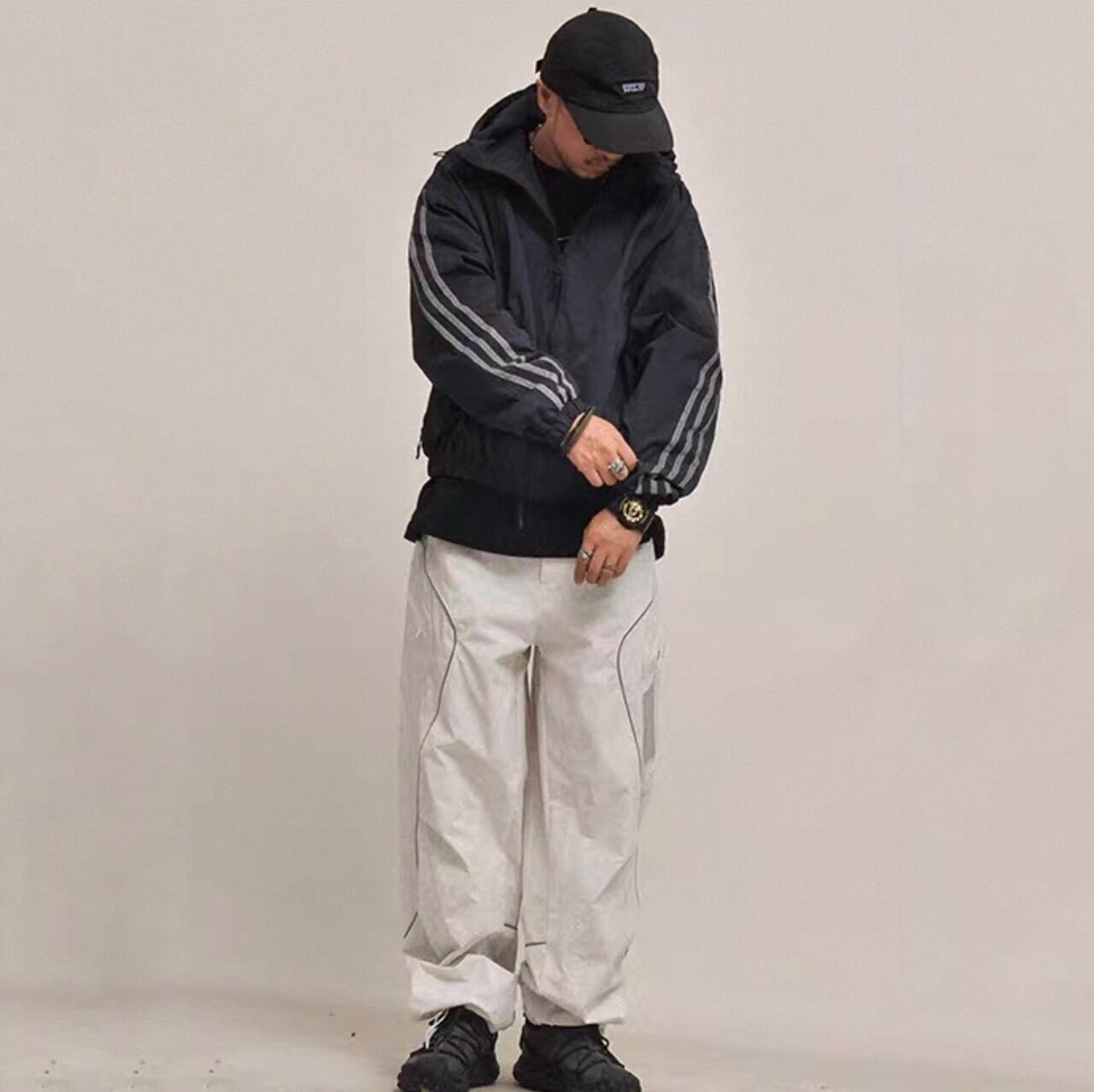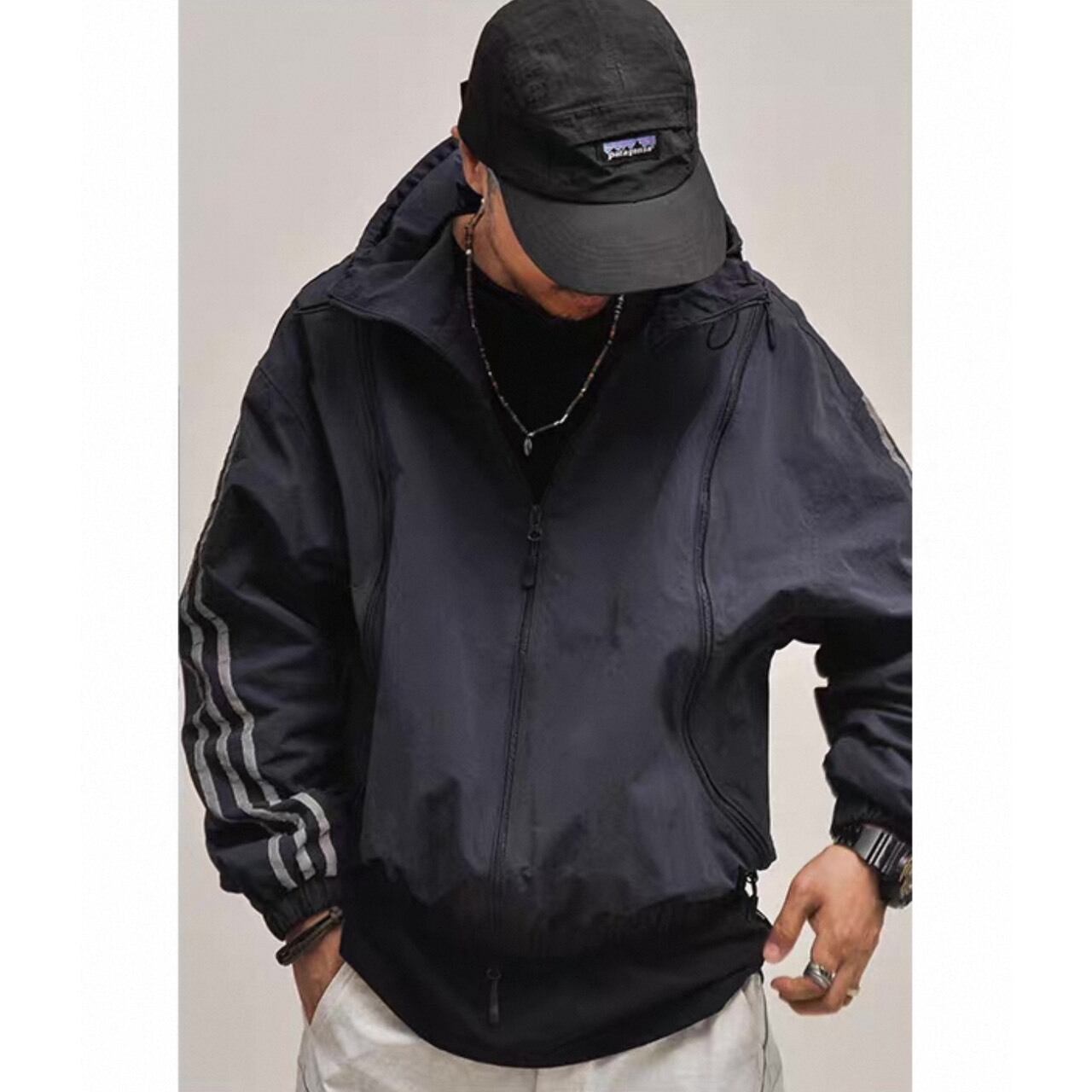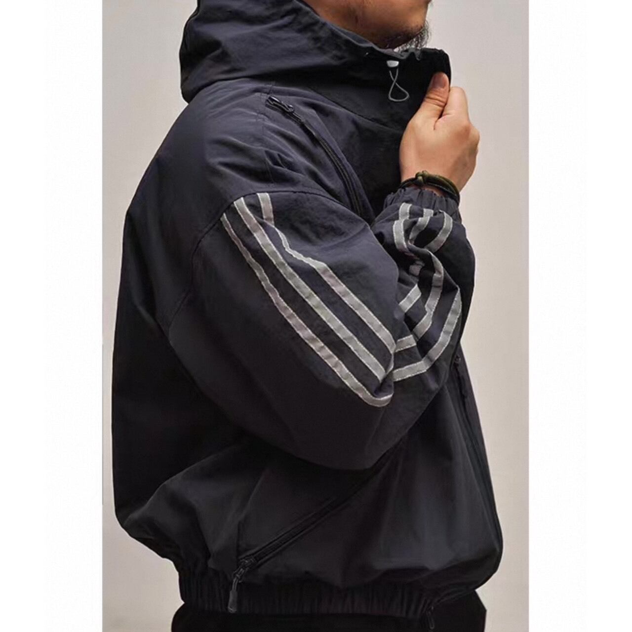 袖に入ったリフレクターラインが特徴のナイロンフードジャケット。