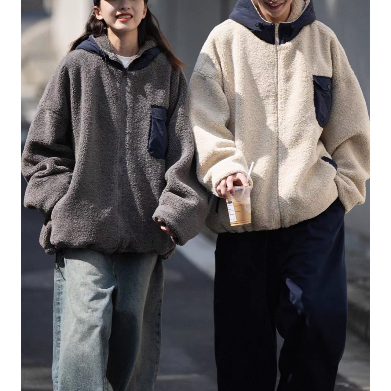 ゆるめのサイズ感と配色デザインが魅力のフリースジップアップジャケット。