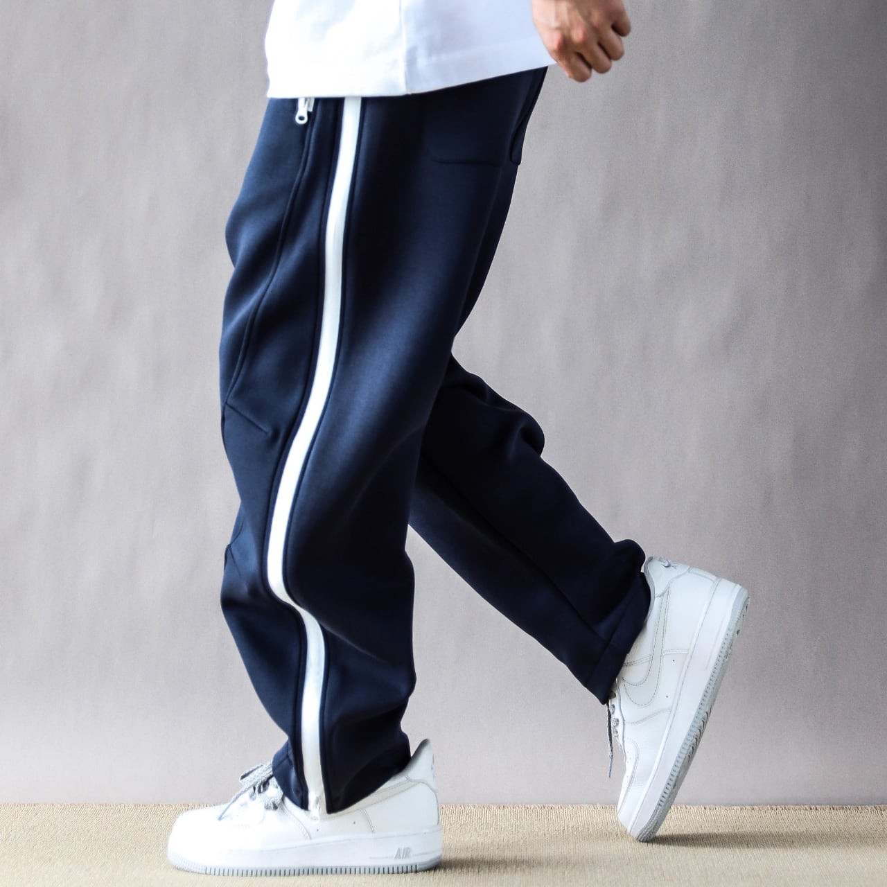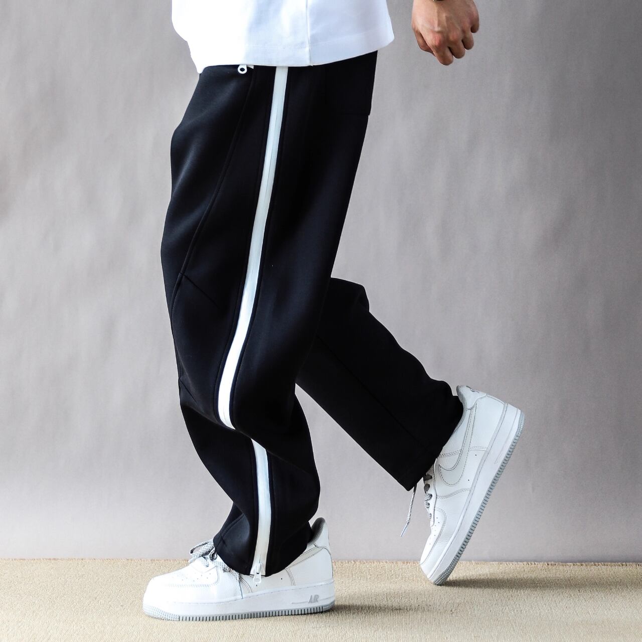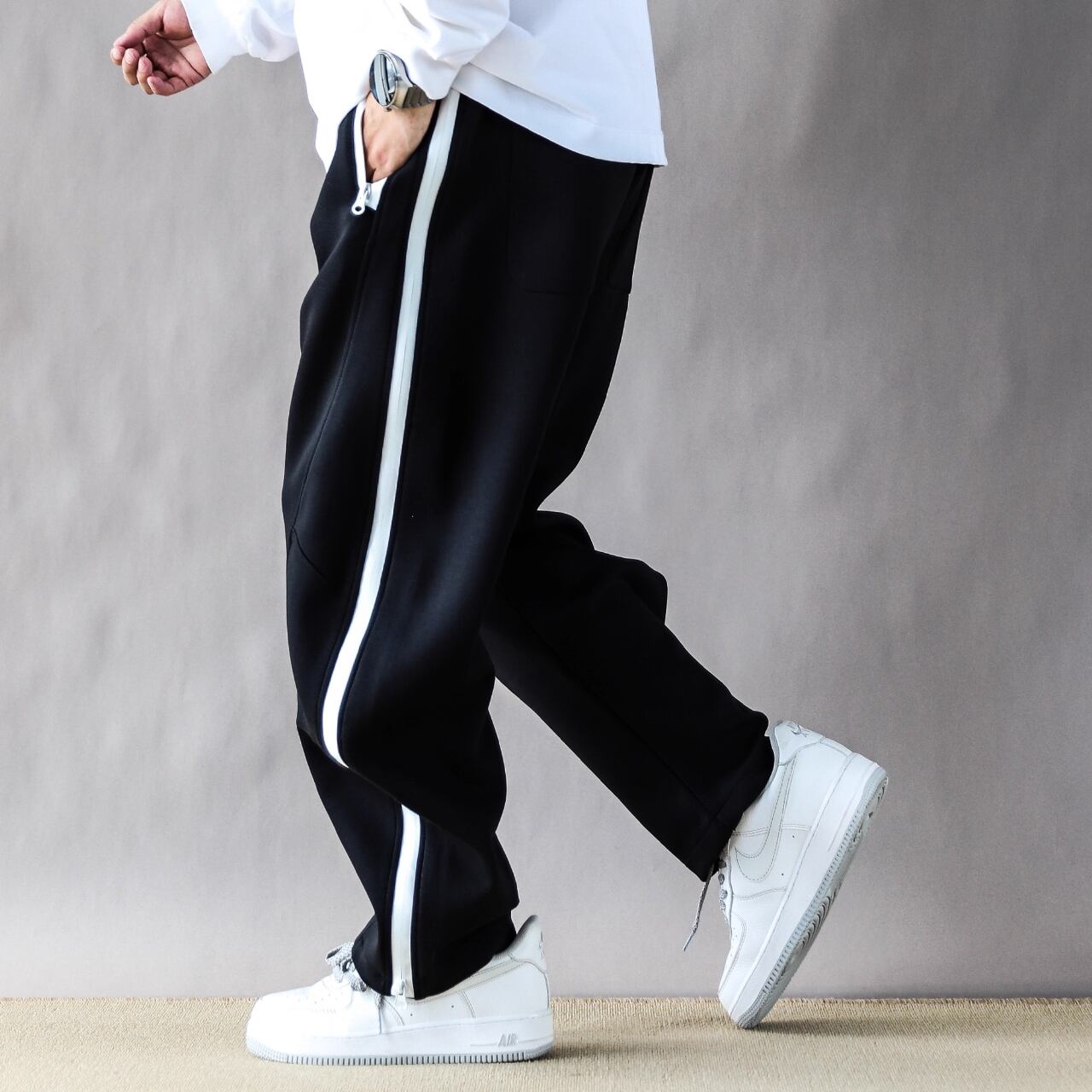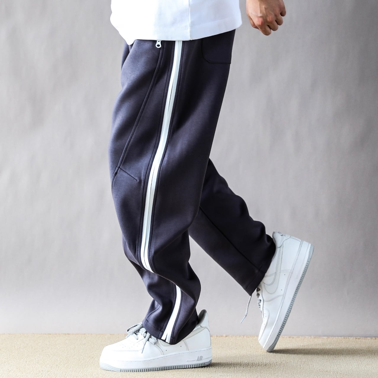 サイドに配したホワイトラインが印象的なトラックパンツ。