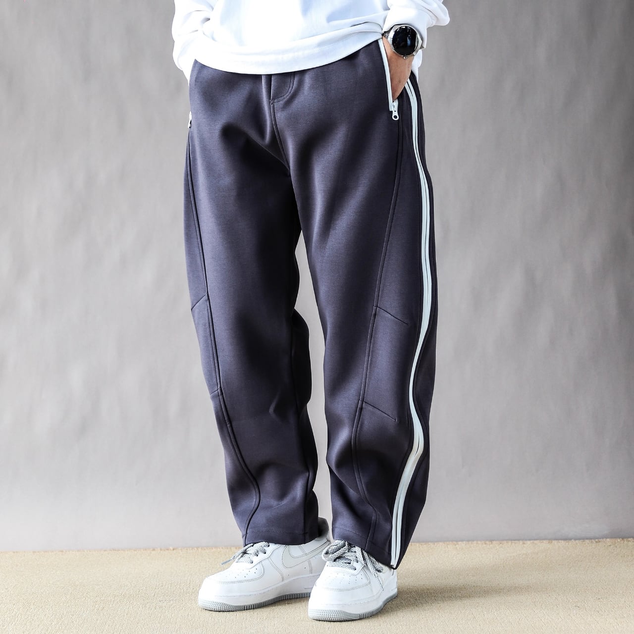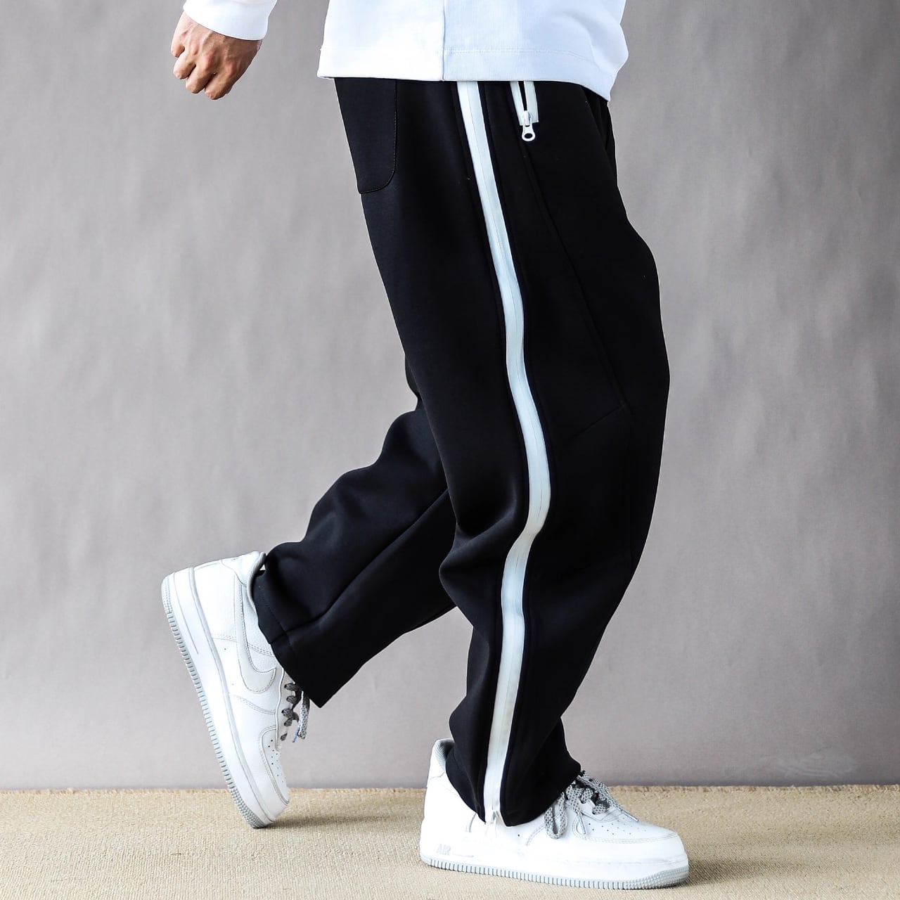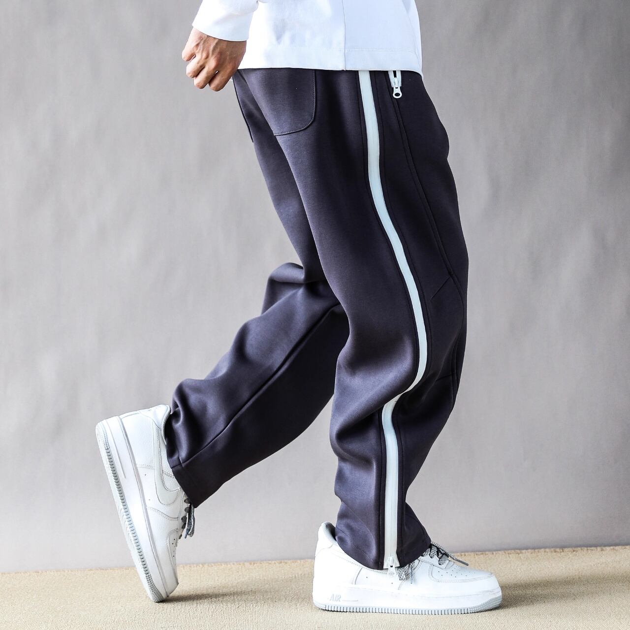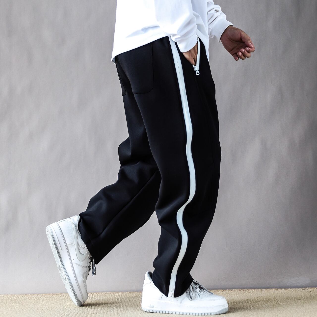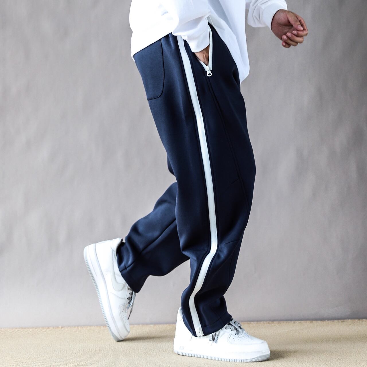 サイドに配したホワイトラインが印象的なトラックパンツ。