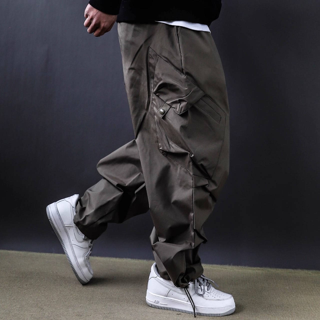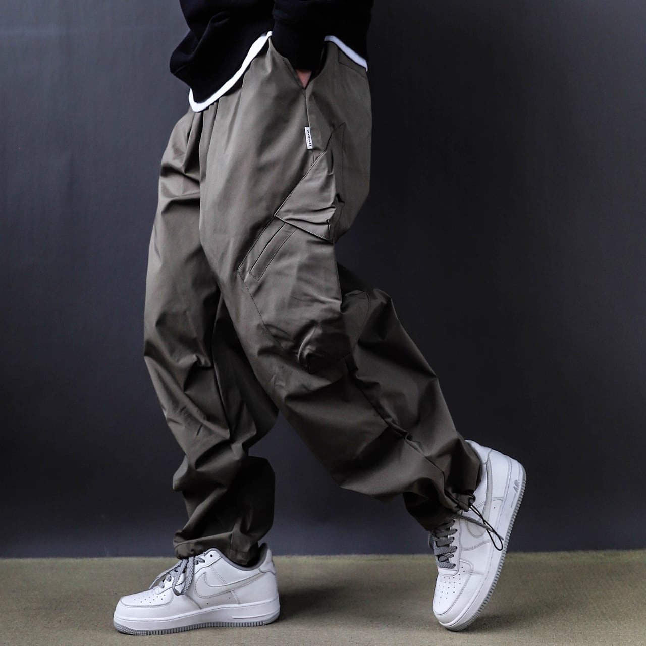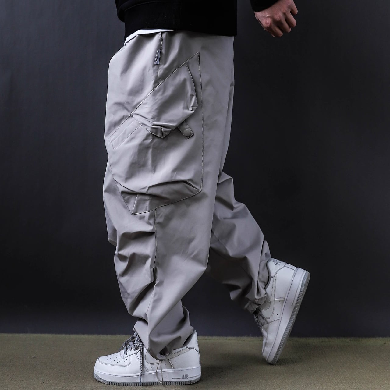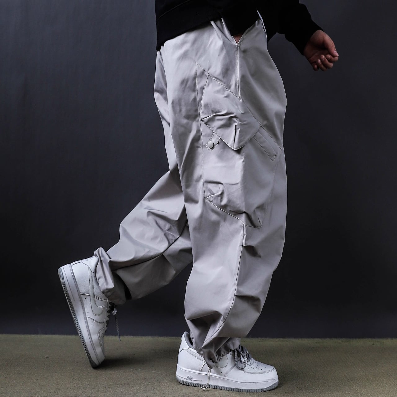 斜めに配置されたカーゴポケットがアクセントとなり、どの角度から見ても印象的。