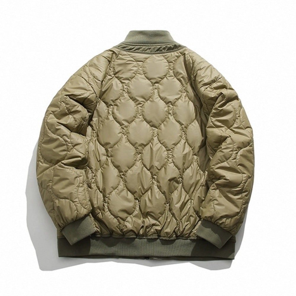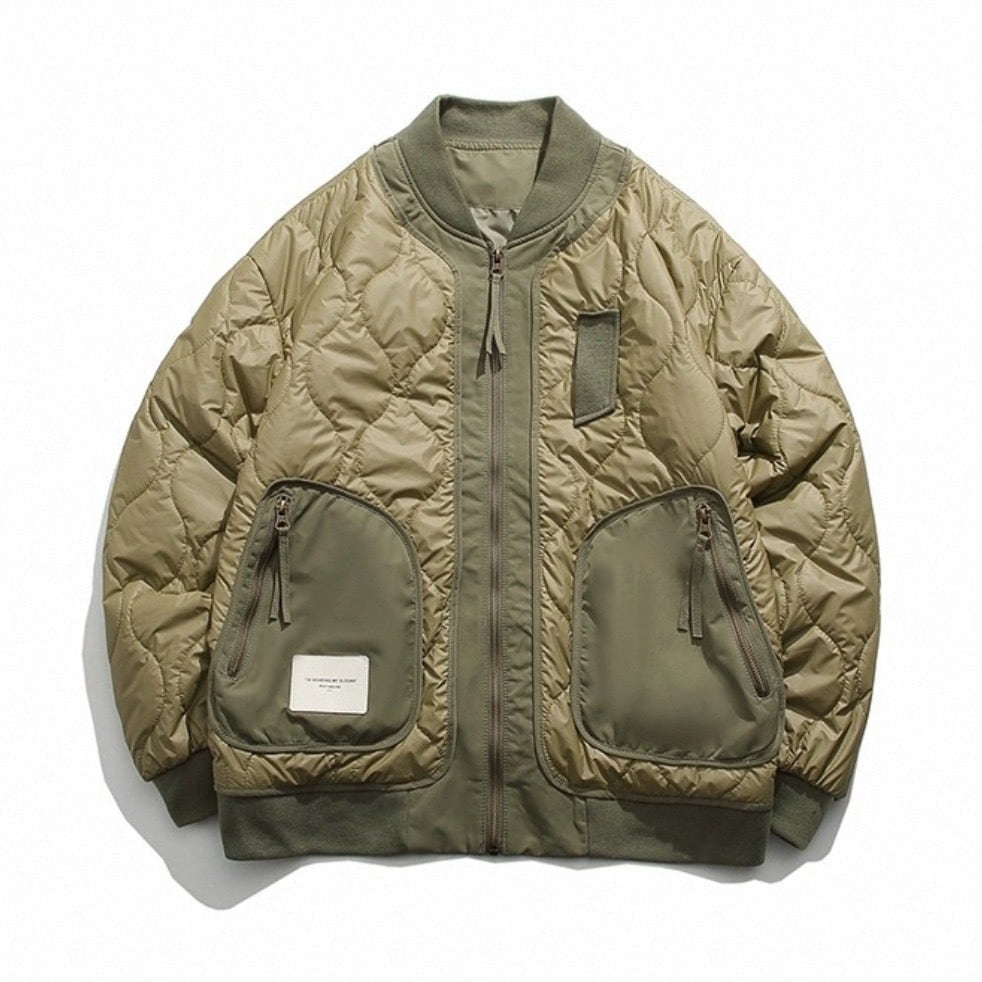 キルティングの立体感と、異素材ポケットがアクセントになった一枚。