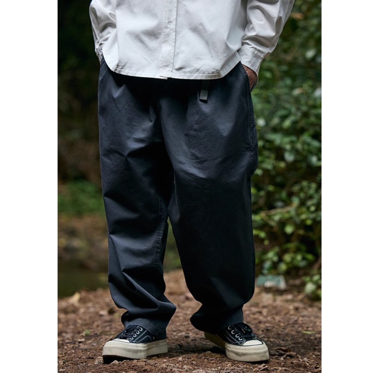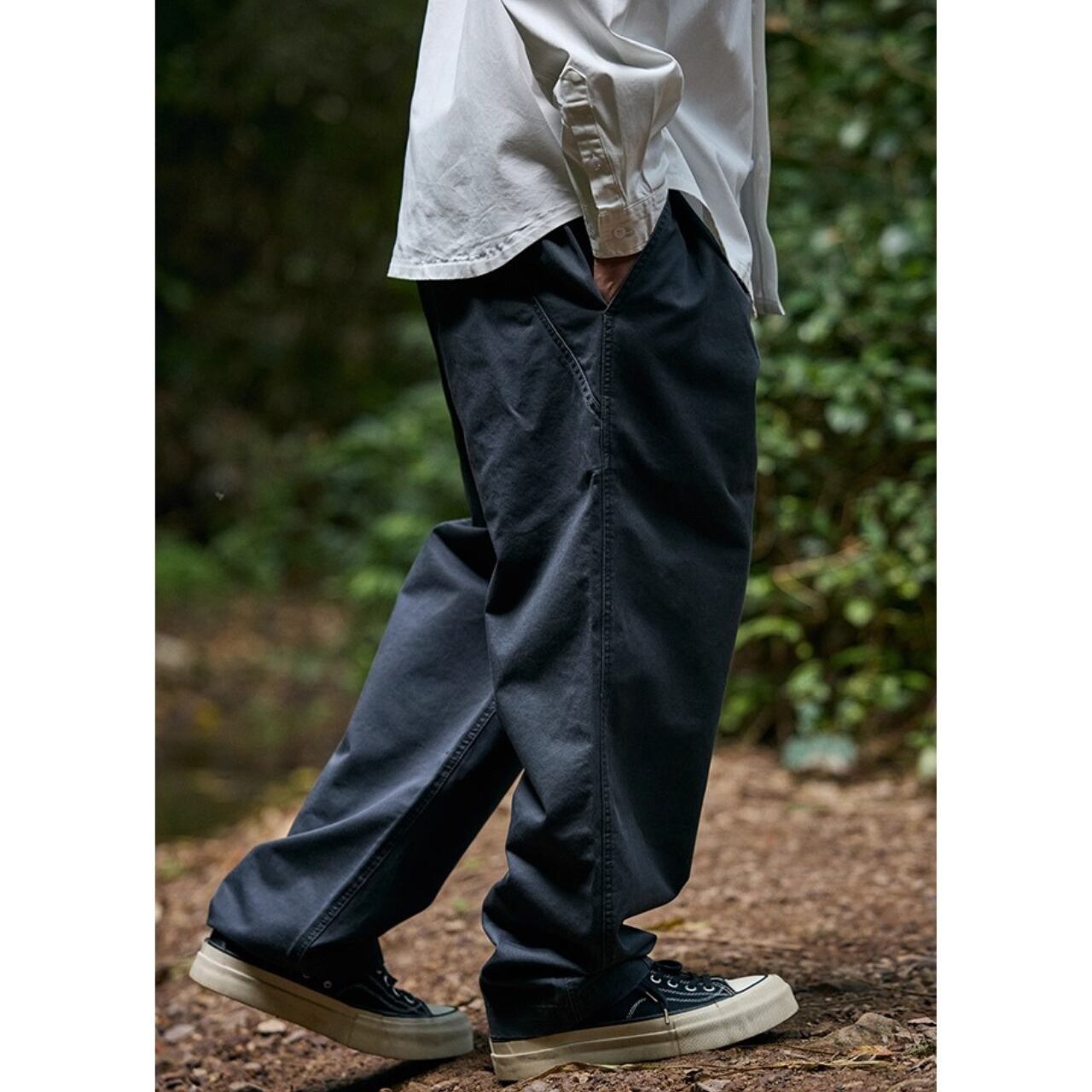 ワイドながらも程よくテーパードしたラインで、野暮ったくならず上品な印象に仕上がるパンツ。