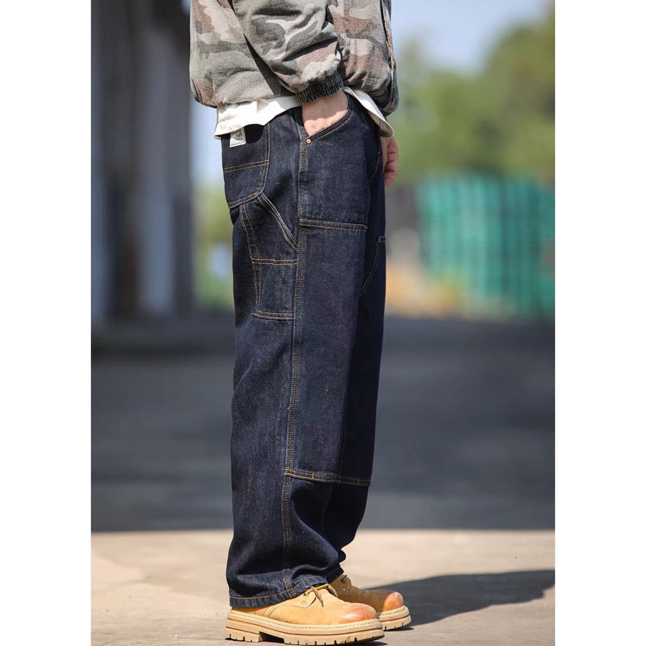 ワークテイストを感じさせるステッチデザインが印象的なルーズデニムパンツ。