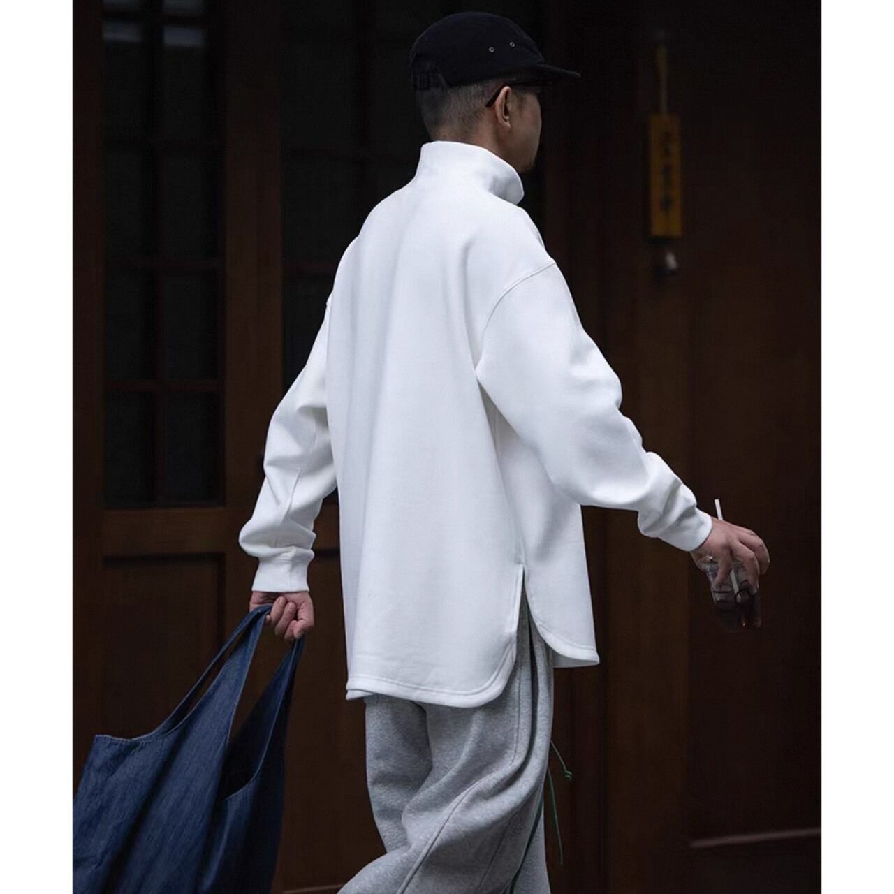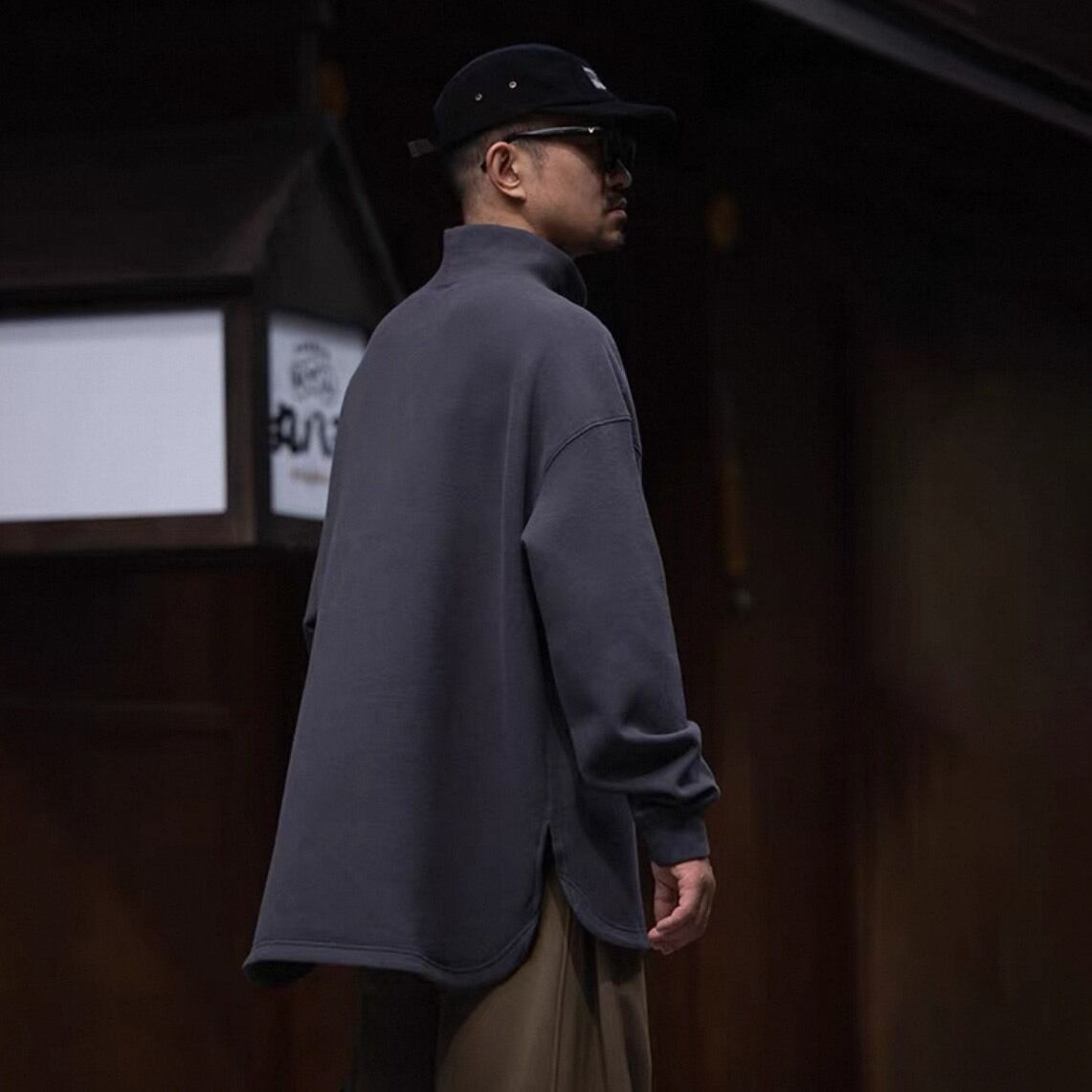 サイドスリットが動きやすさを高め、ワイドパンツやスウェットパンツとの相性も抜群。