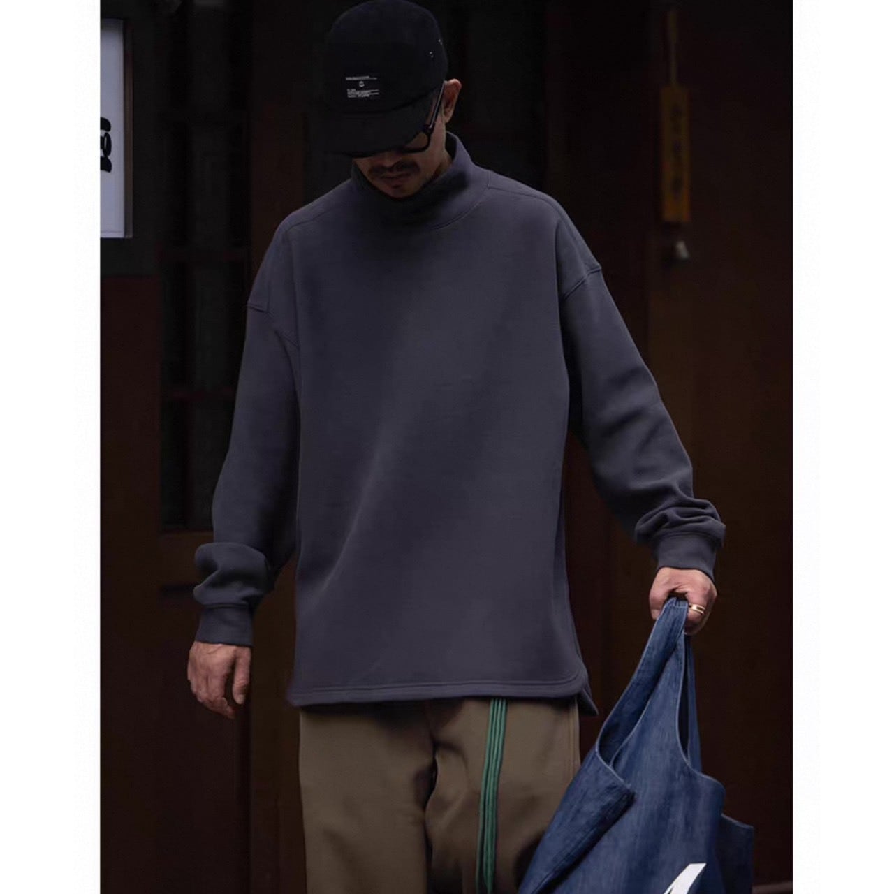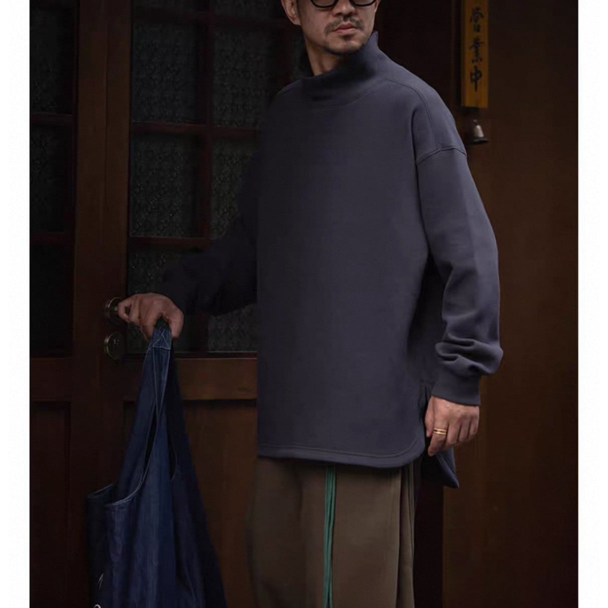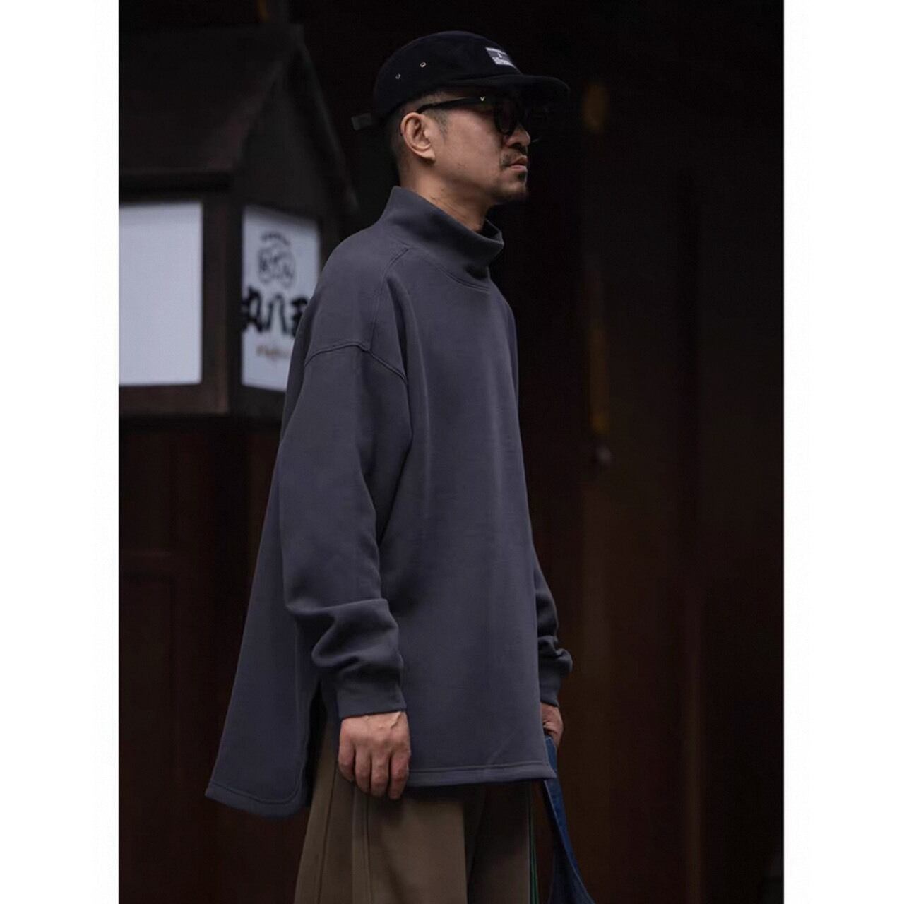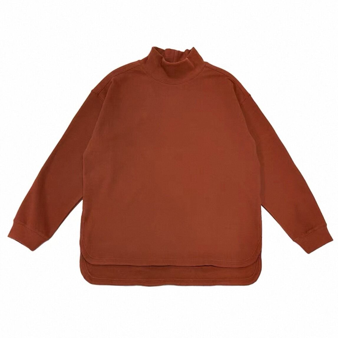 ゆるやかなハイネックと前後差のあるラウンドヘムが印象的なロングスリーブトップス。