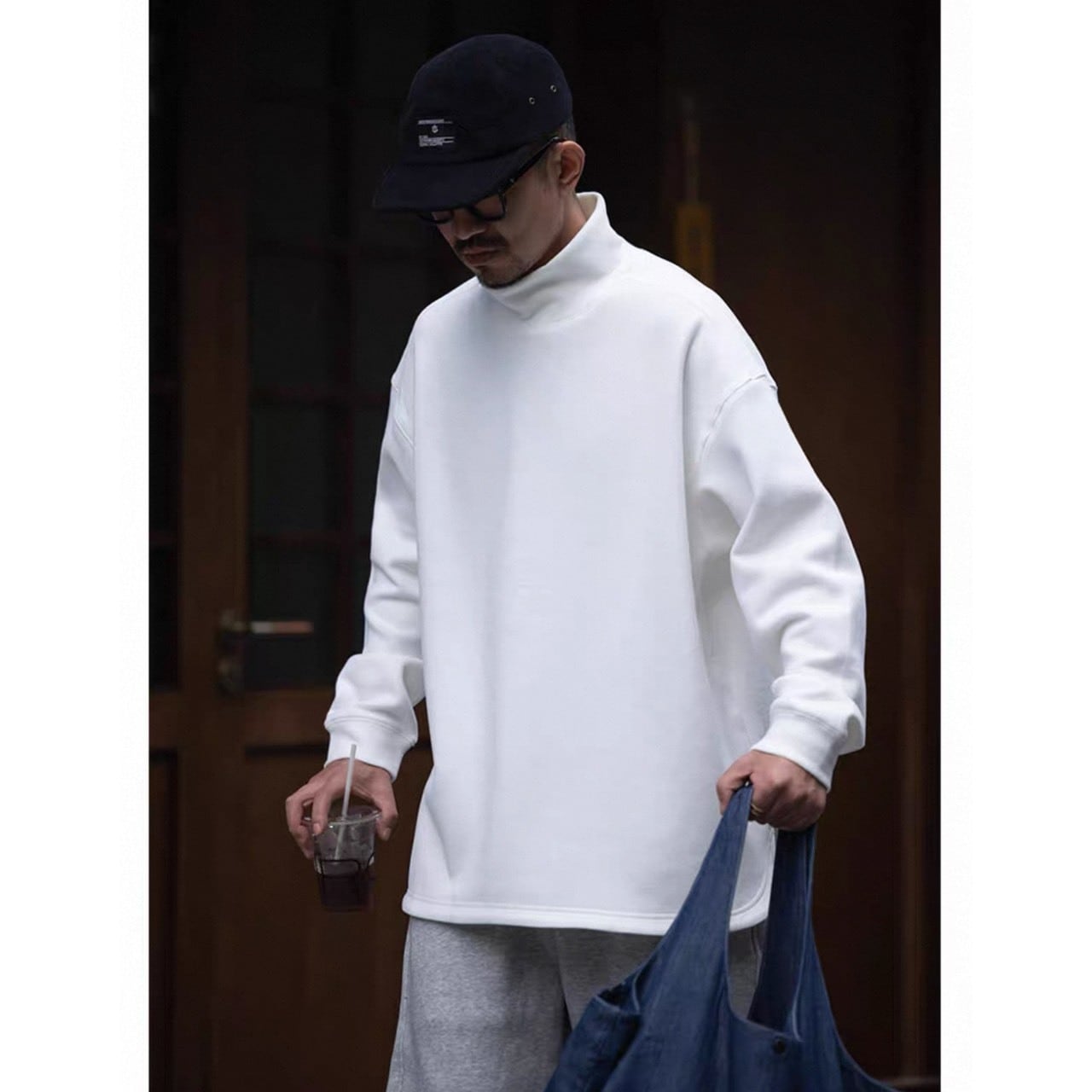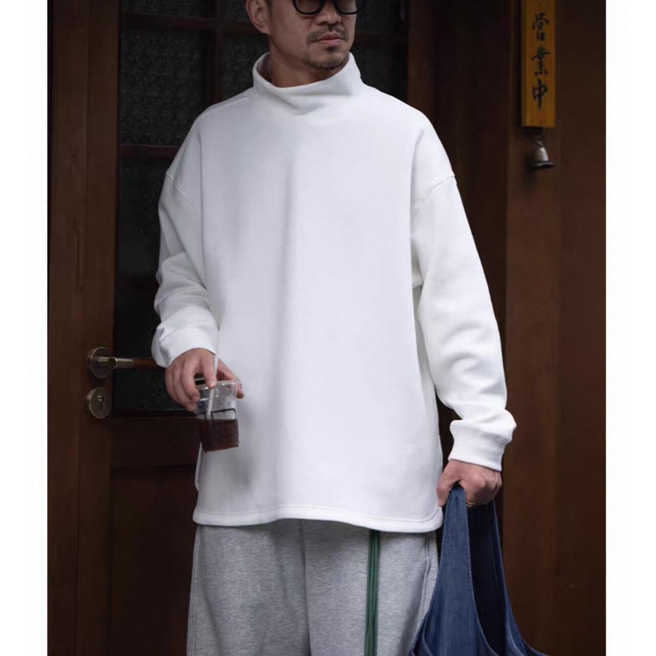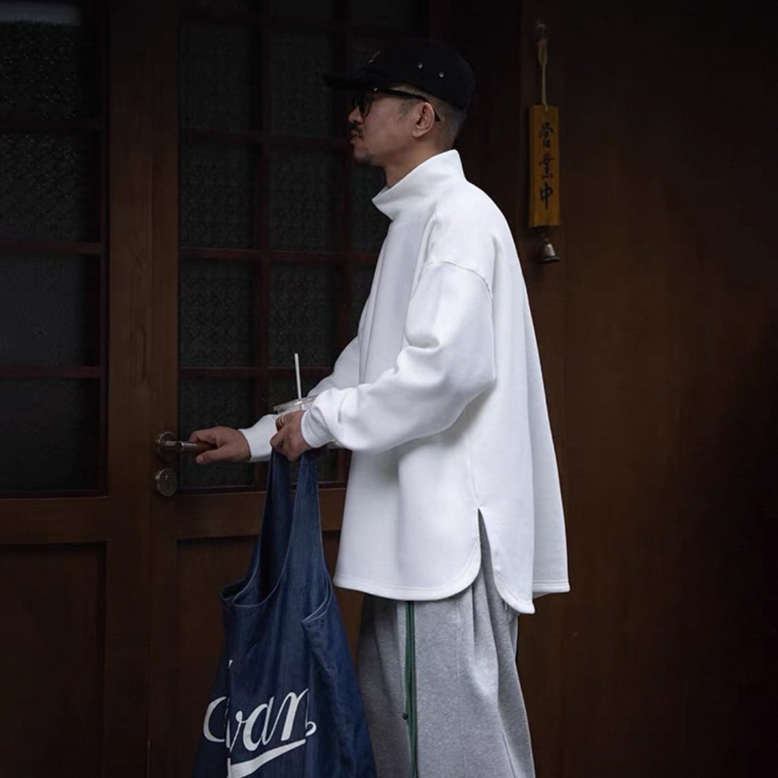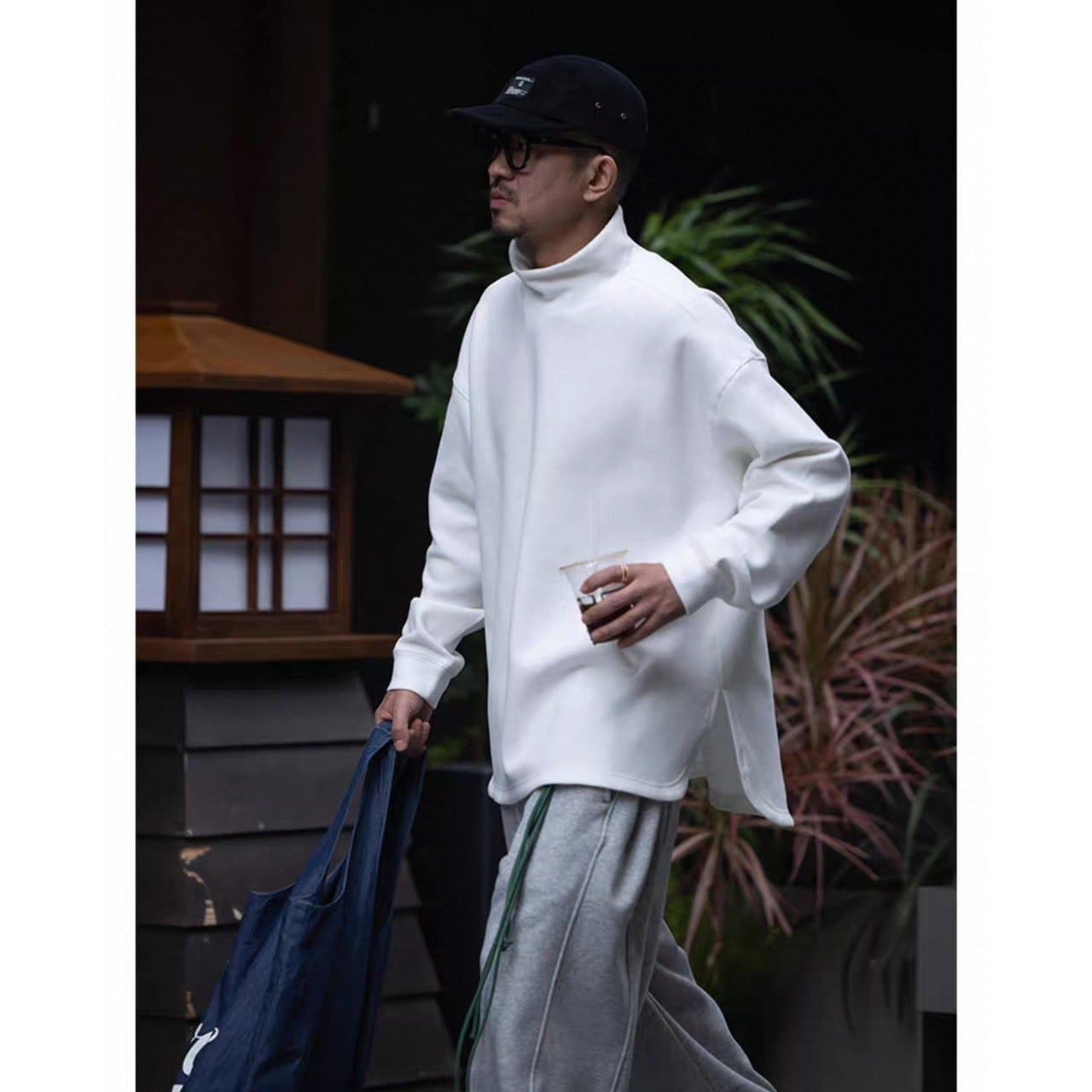 ゆるやかなハイネックと前後差のあるラウンドヘムが印象的なロングスリーブトップス。