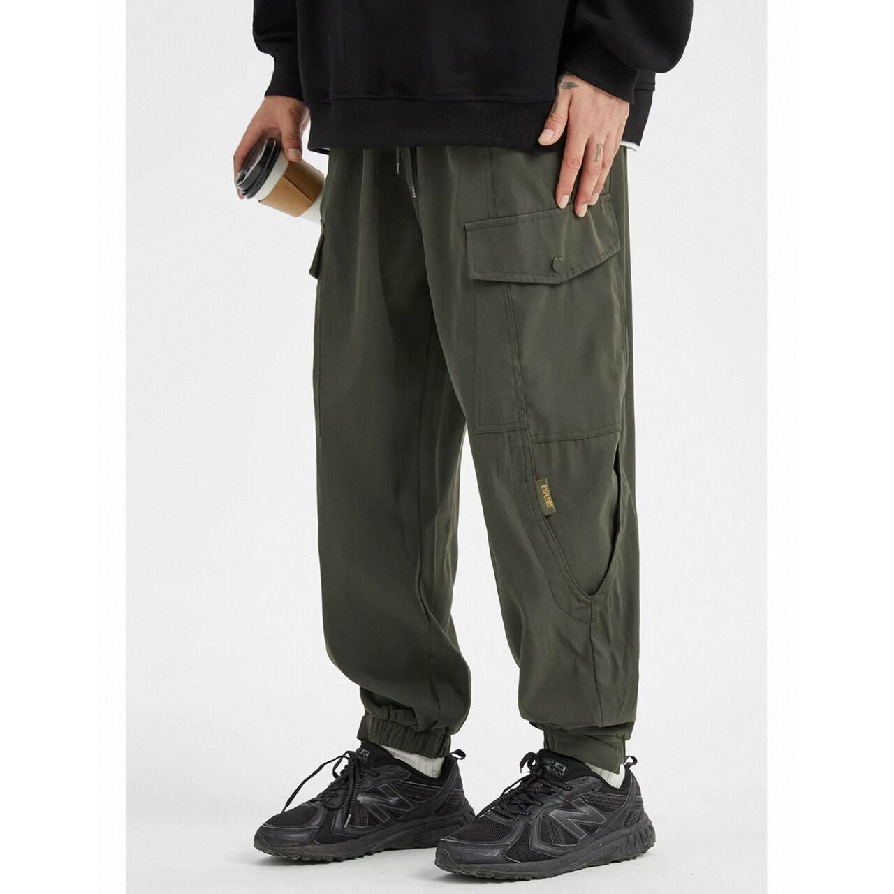 大きめのカーゴポケットが存在感を放つジョガータイプのワイドパンツ。