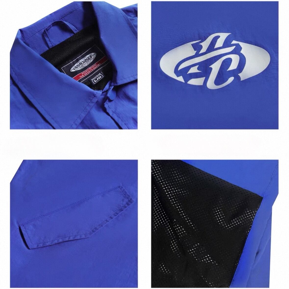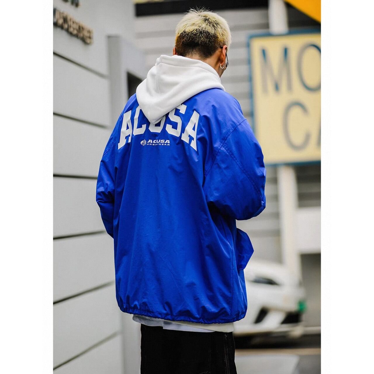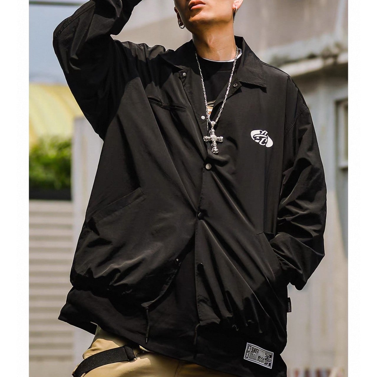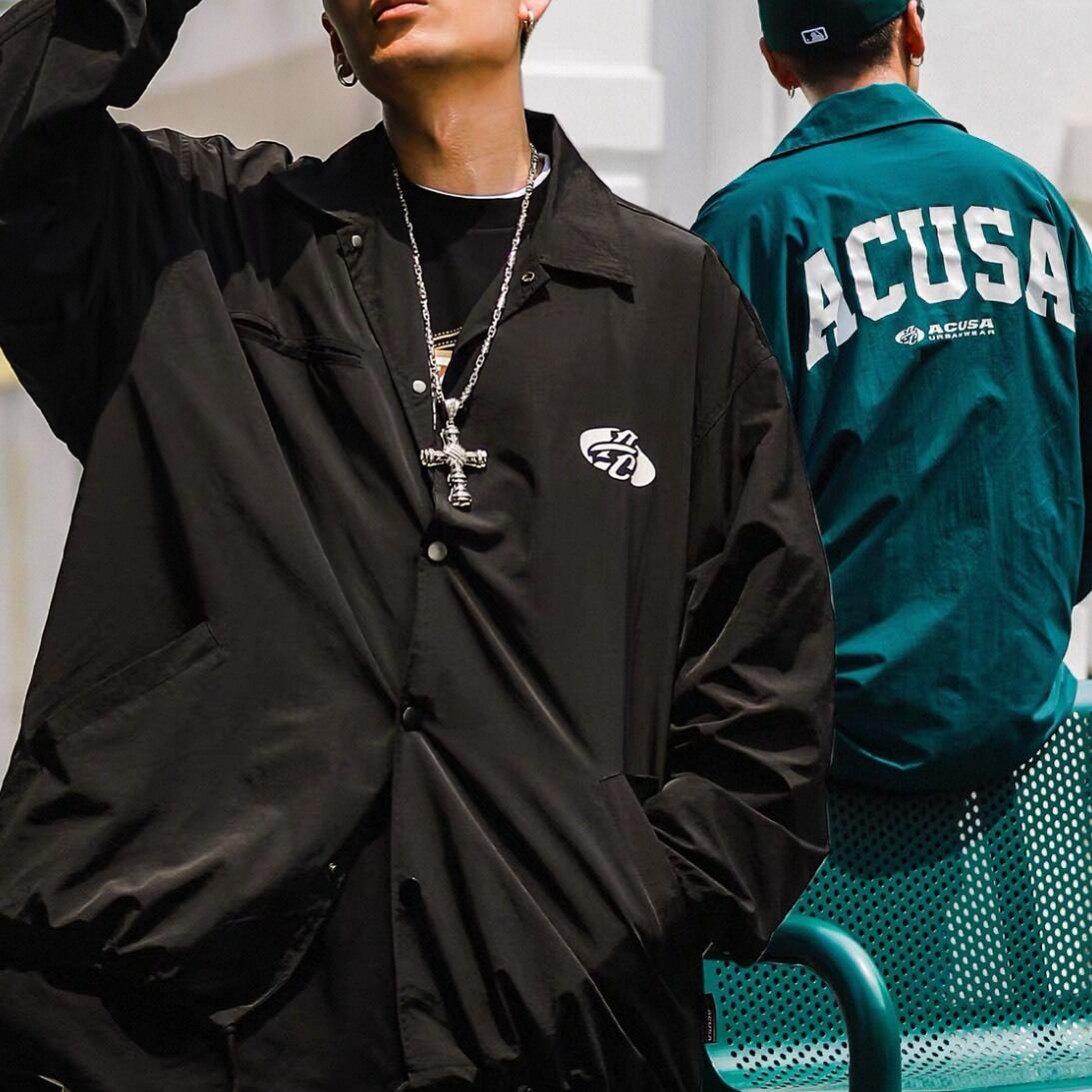 バックの大胆なグラフィックが目を惹くストリートコーチジャケット。